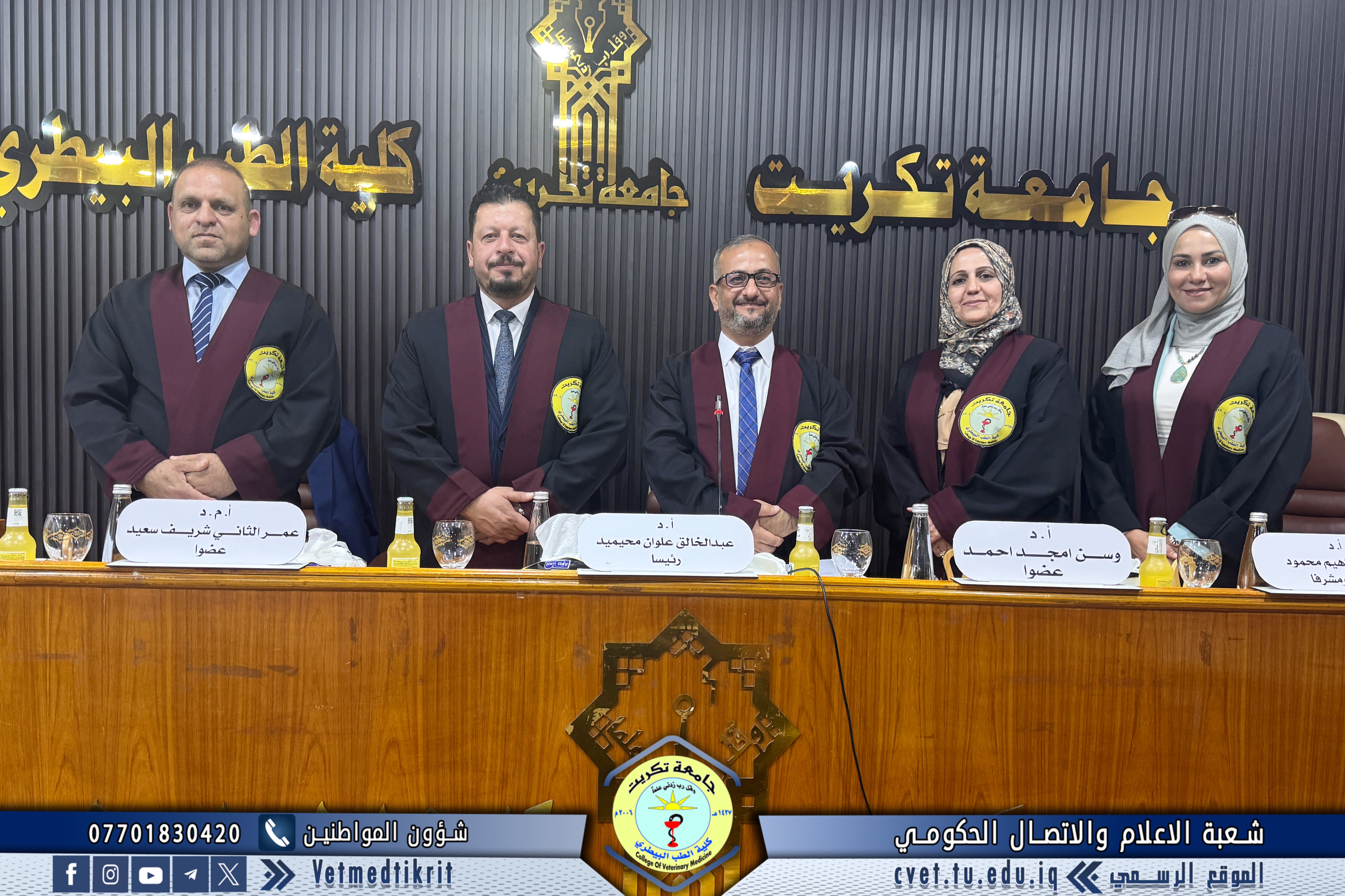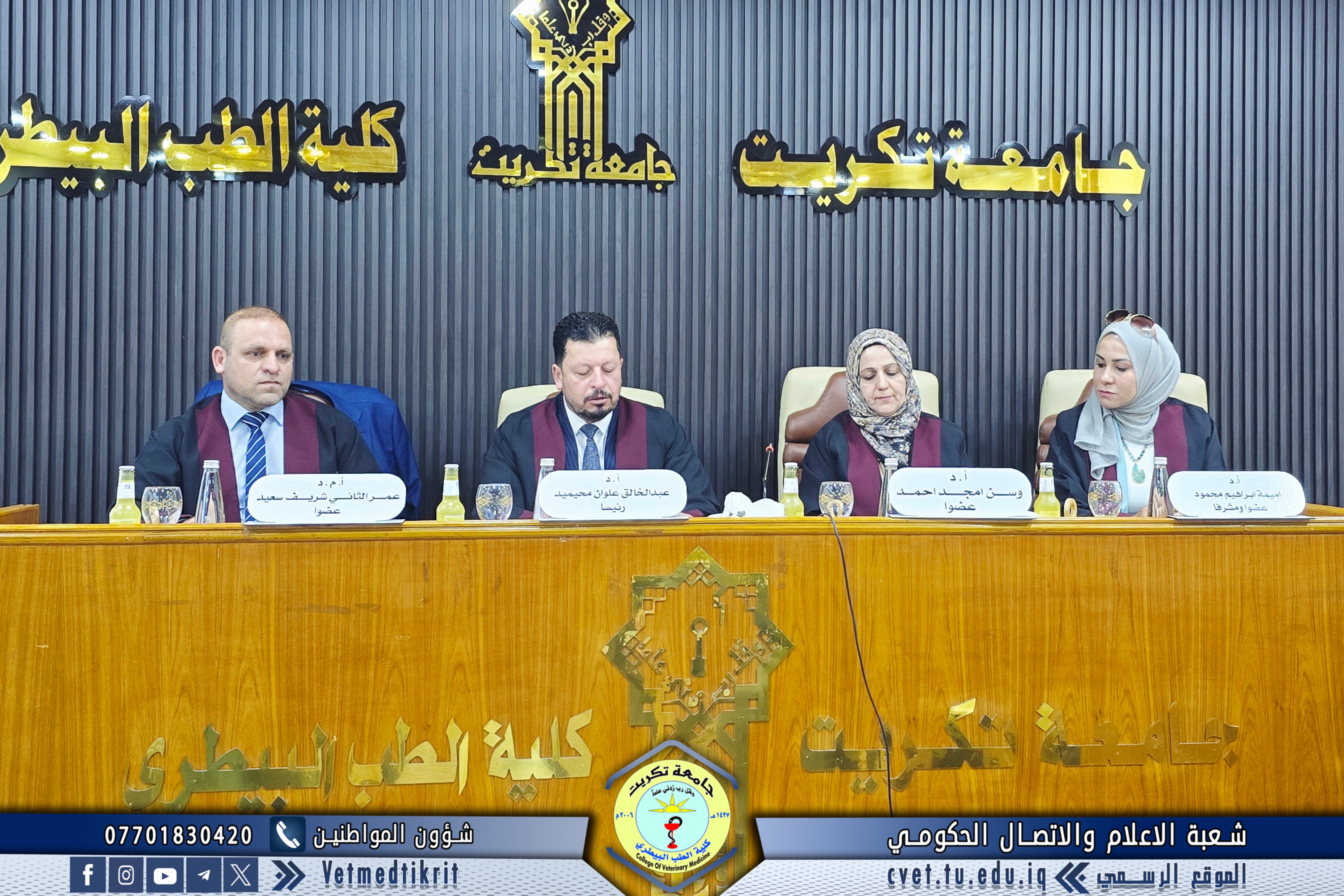 وحضر المناقشة التي اقيمت على قاعة الدكتور مهند ماهر في كلية الطب البيطري عدد من السيدات والسادة اعضاء الكادر التدريسي وجمع من الطلبة.