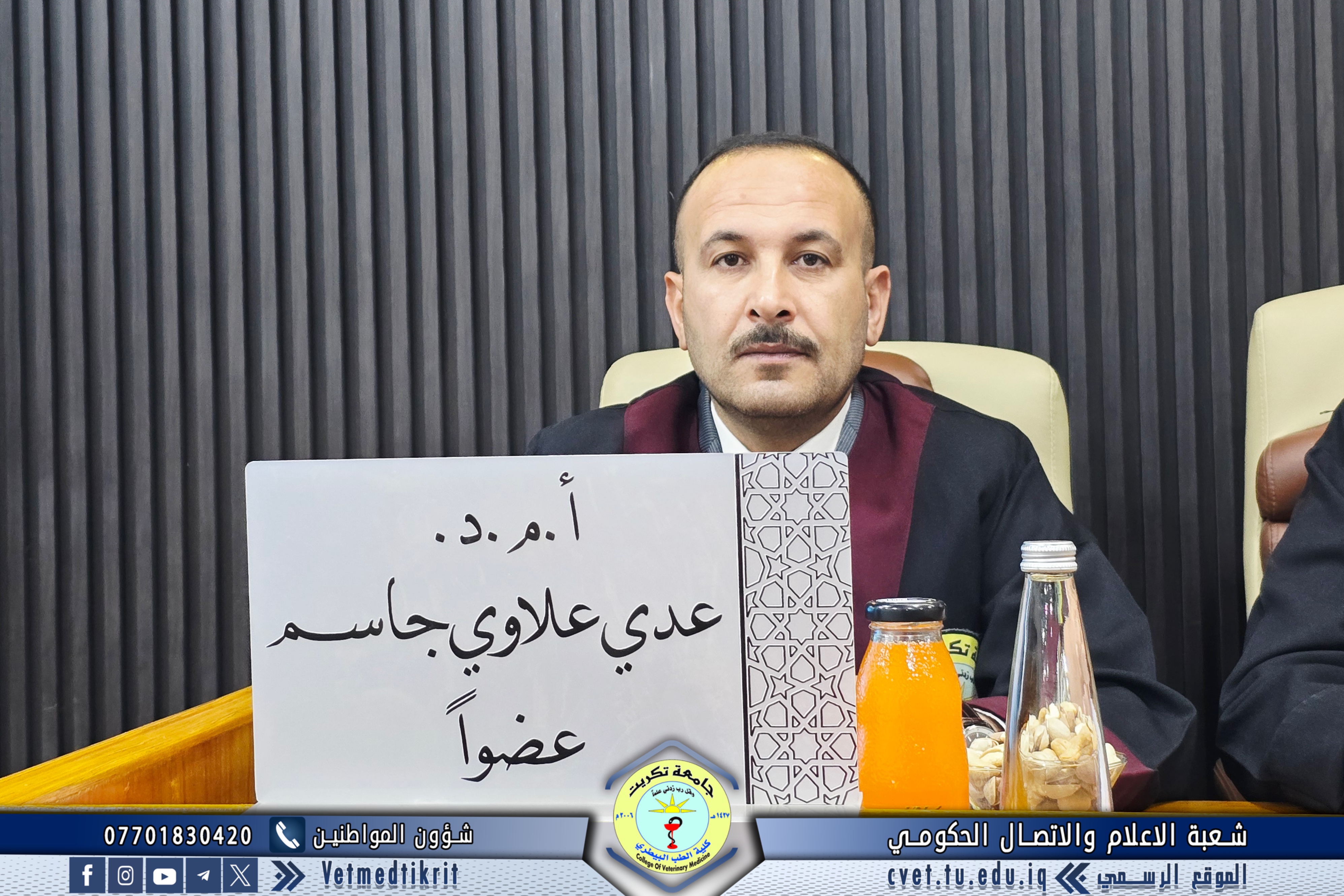- الاستاذ المساعد الدكتور عدي علاوي جاسم / تخصص تشريح وانسجة / جامعة تكريت - كلية الطب البيطري / عضوا