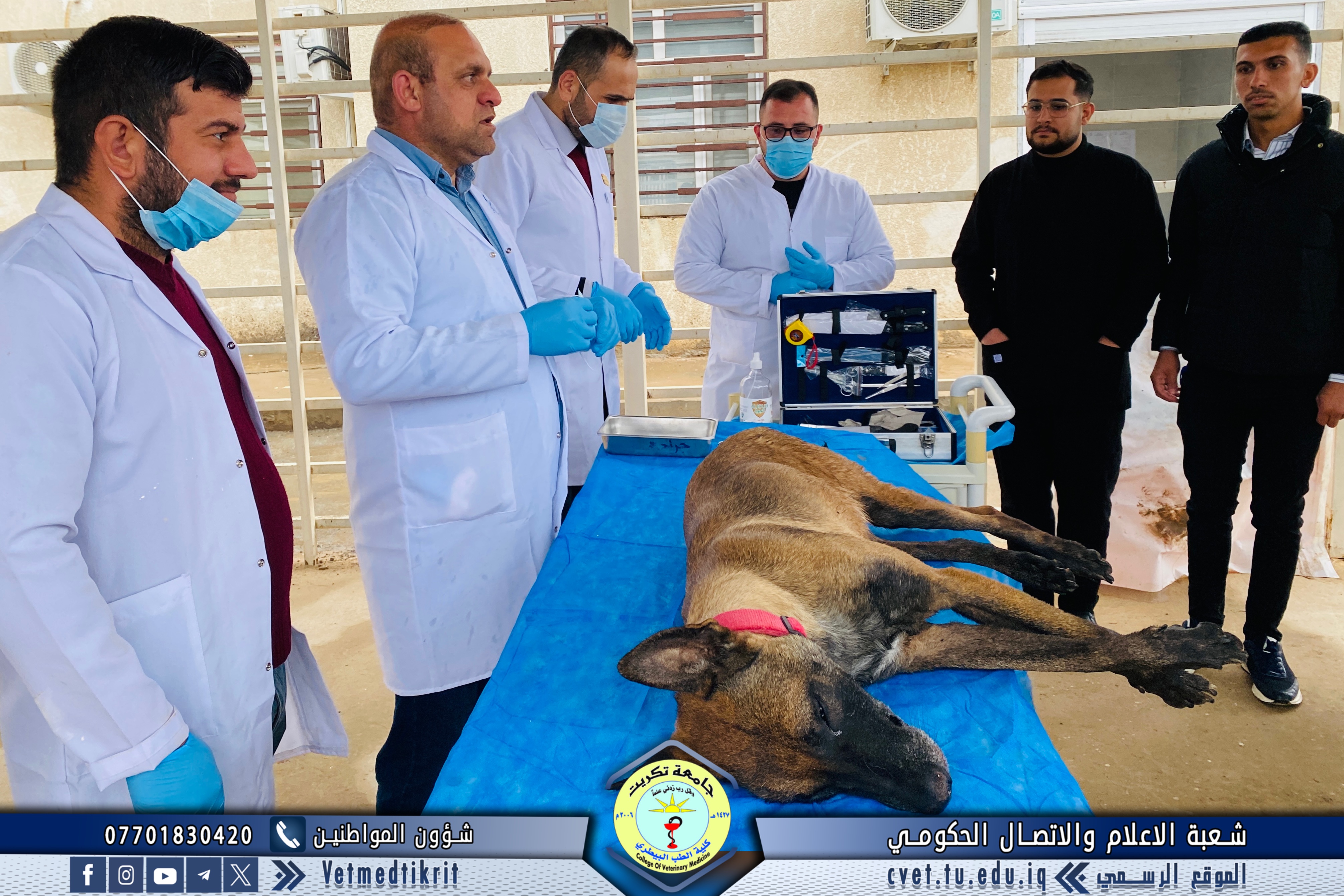 استقبلت وحدة العيادة الخارجية في كلية الطب البيطري بجامعة تكريت حالة بيطرية تابعة لقيادة شرطة محافظة صلاح الدين، تمثّلت بكلب من وحدة إدارة وتدريب الكلاب البوليسية (K-9) وصل إلى الوحدة نافقًا.