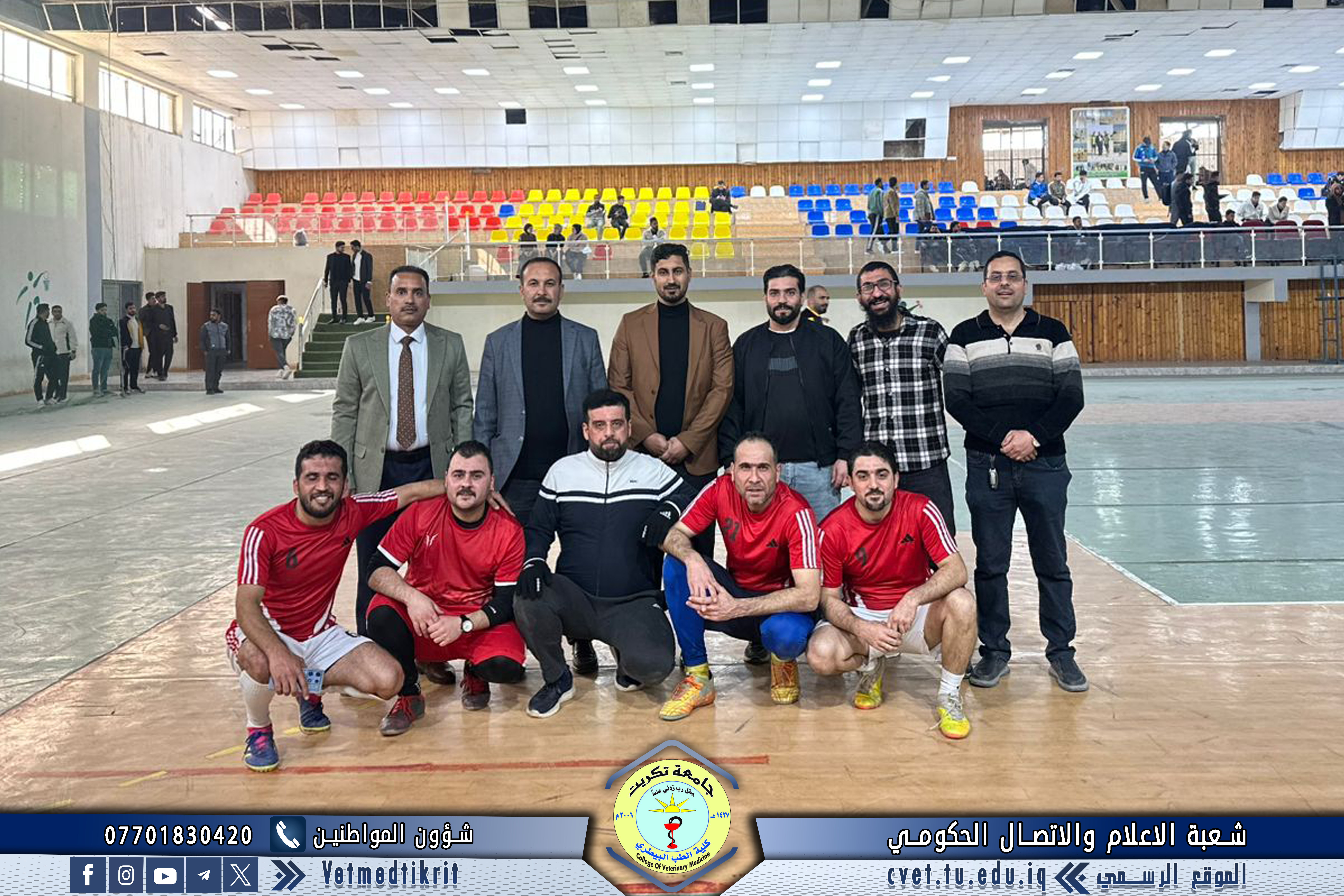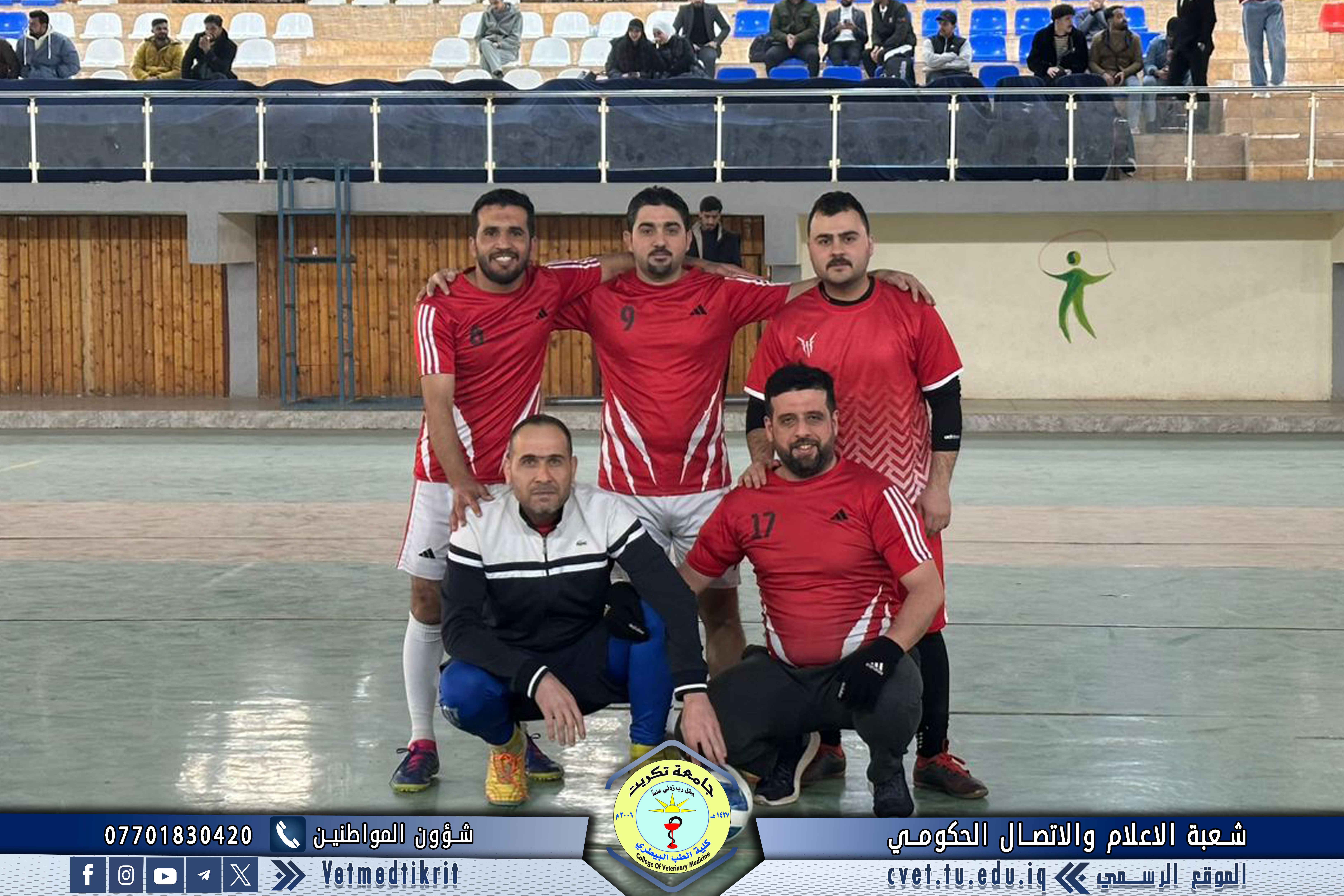 حقق فريق كلية الطب البيطري بخماسي كرة القدم فوزًا مستحقًا على فريق كلية التربية البدنية وعلوم الرياضة، في المباراة التي أُقيمت ضمن منافسات بطولة رئيس جامعة تكريت بخماسي كرة القدم، وعلى ملعب كلية التربية البدنية وعلوم الرياضة المغلق.