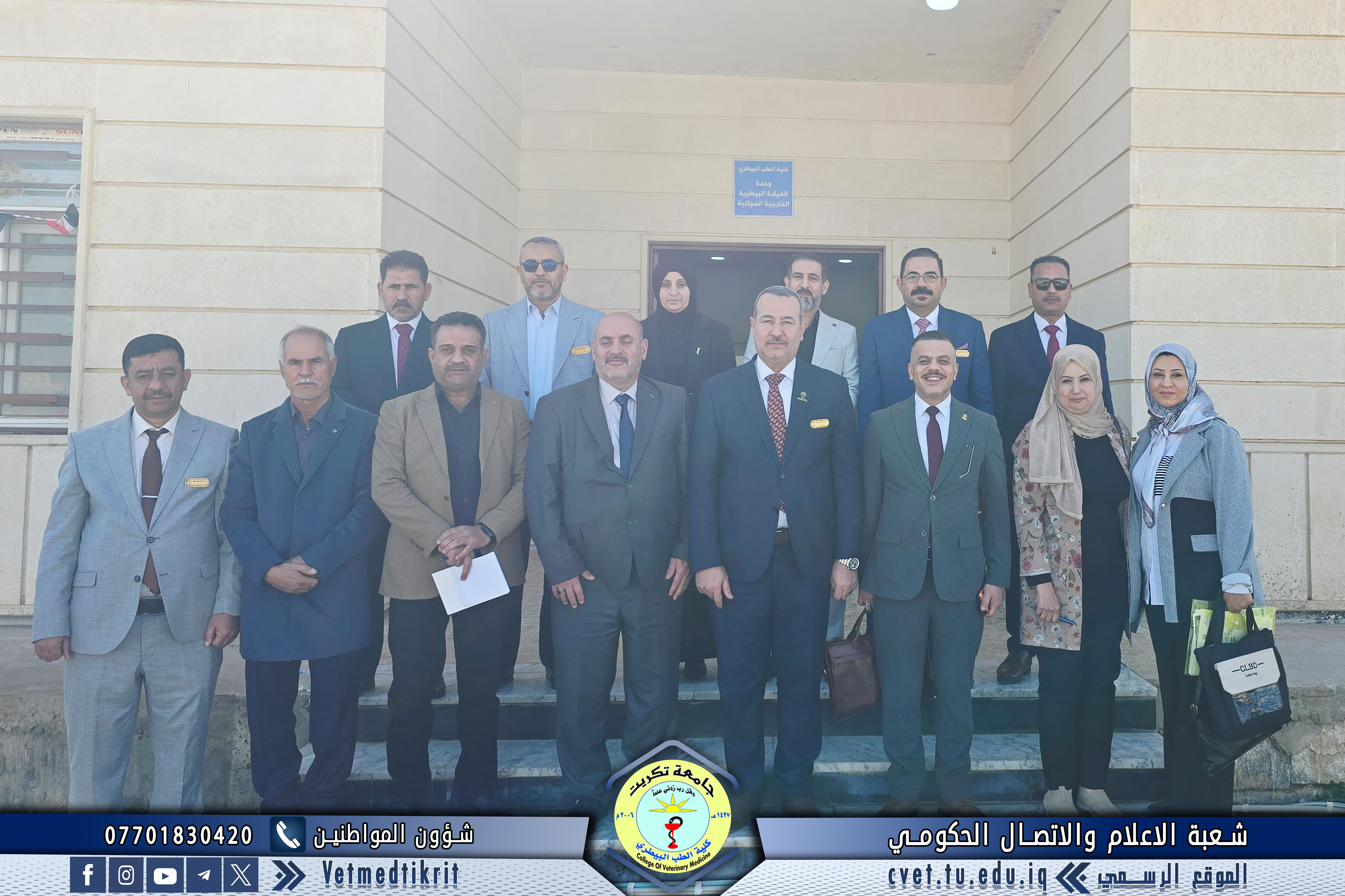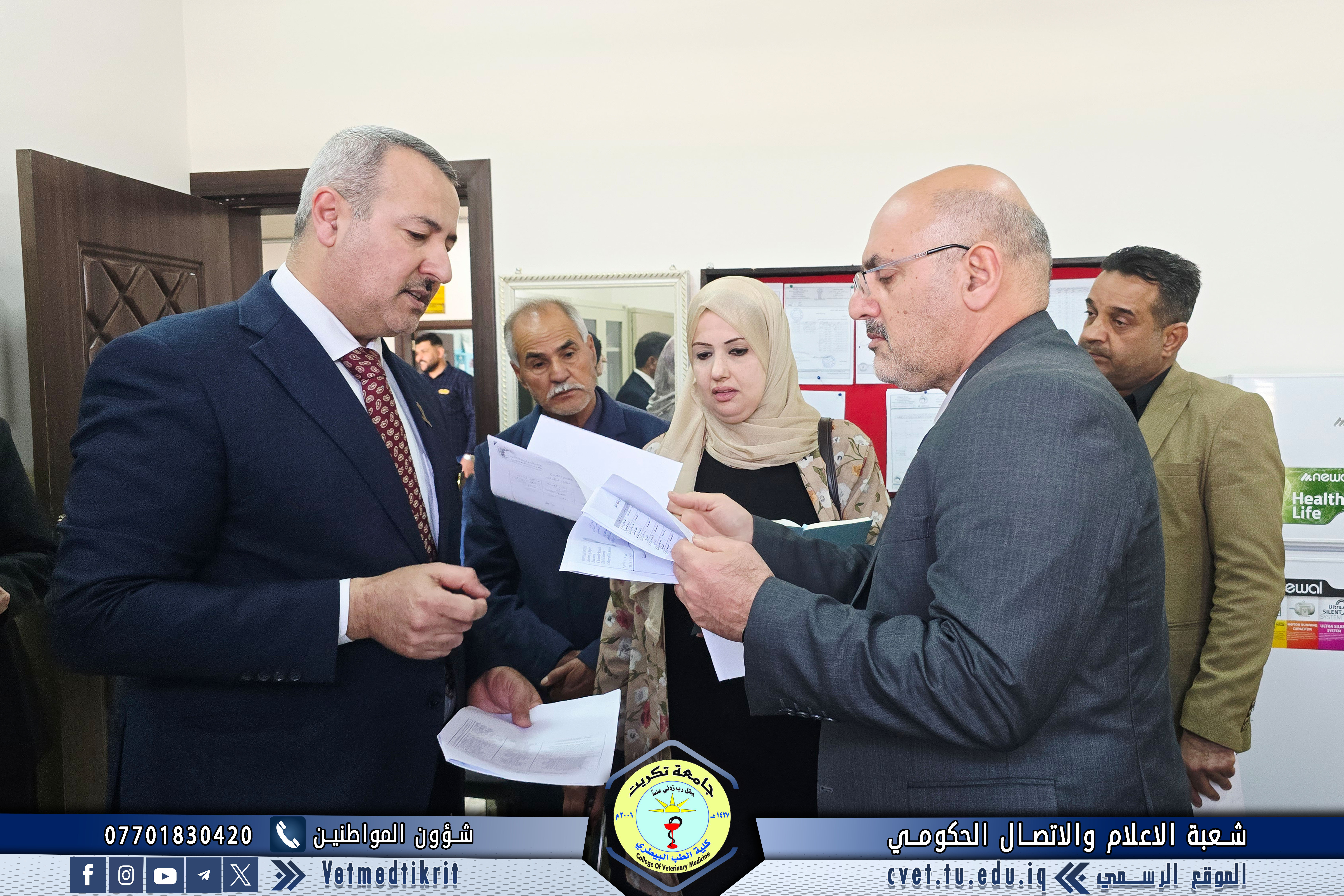 استقبلت كلية الطب البيطري في جامعة تكريت الفريق الوزاري المختص باستحداث المستشفى البيطري التعليمي، بالتزامن مع إقامة معرض النشاطات الطلابية العلمي والفني الثالث، في أجواء أكاديمية مميزة عكست حجم التطور العلمي والإبداعي في الكلية.
