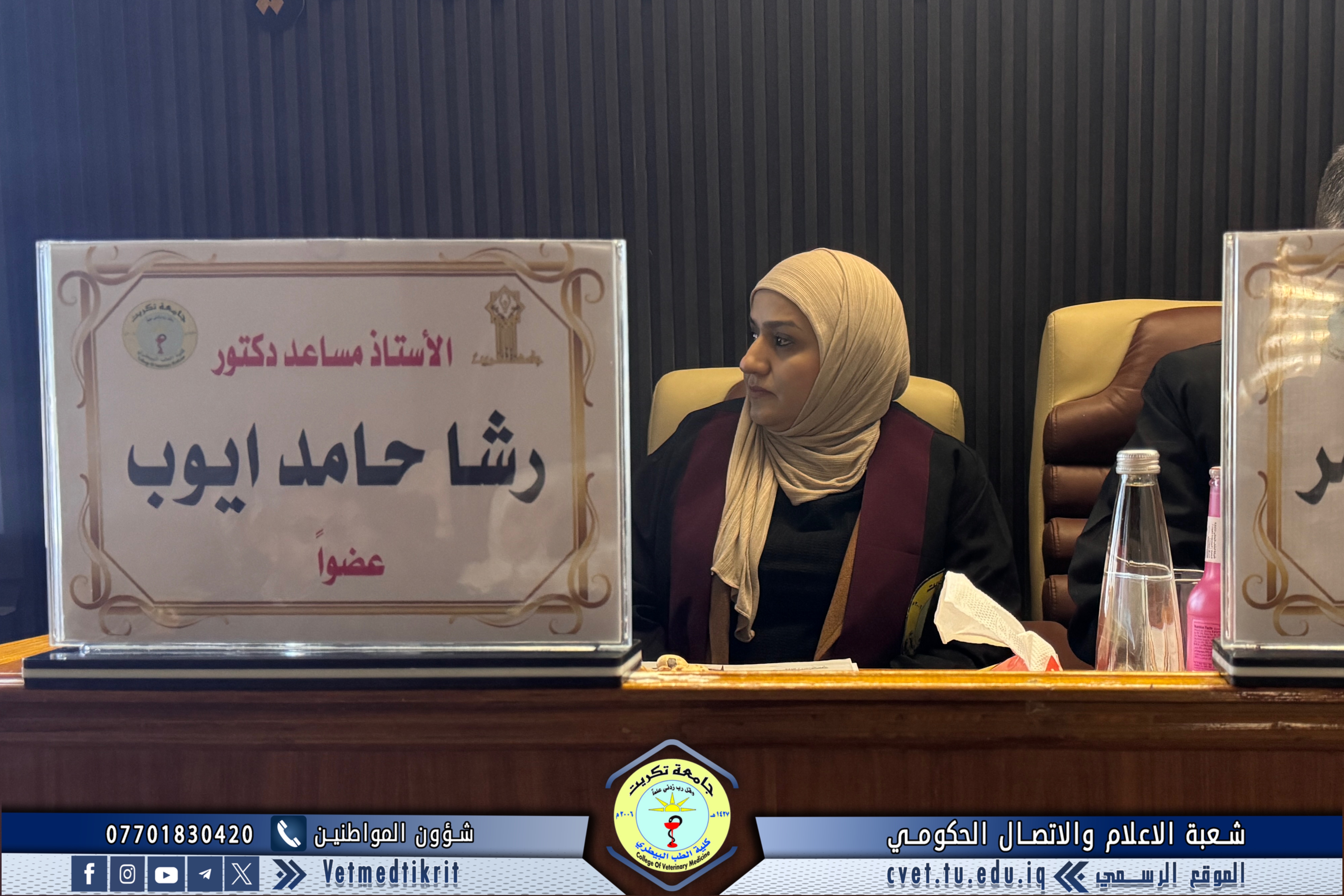 وحضر المناقشة التي اقيمت على قاعة الدكتور مهند ماهر في كلية الطب البيطري عدد من السيدات والسادة اعضاء الكادر التدريسي وجمع من الطلبة.