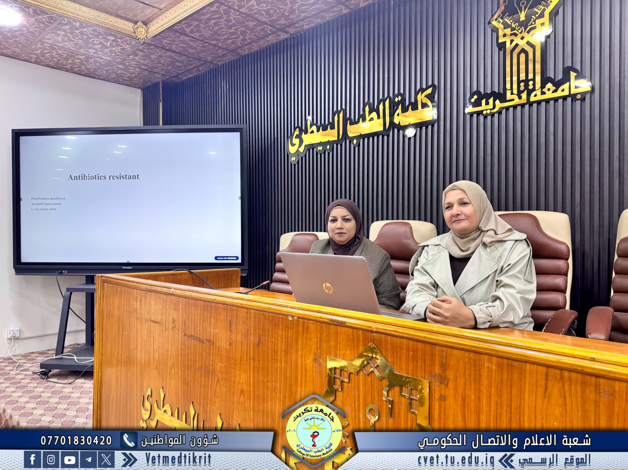 أقامت كلية الطب البيطري في جامعة تكريت، بالتعاون مع مركز التعليم المستمر، دورة علمية بعنوان "مقاومة البكتيريا للمضادات الحياتية: الخطر الصامت"، قدّمها كل من الأستاذ الدكتورة بثينة عبدالحميد عبدالله و الأستاذ المساعد الدكتورة سناء سعود أحمد.