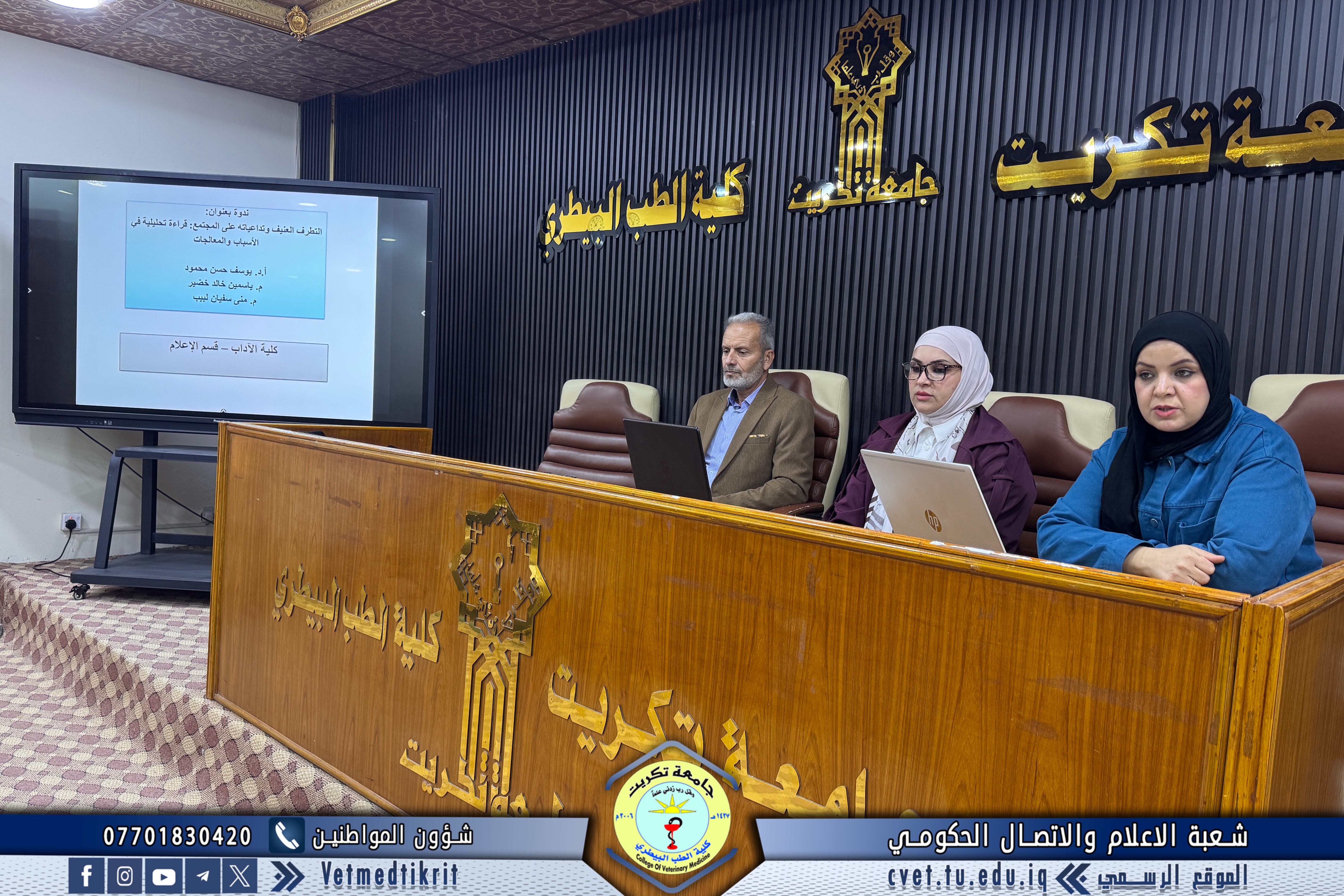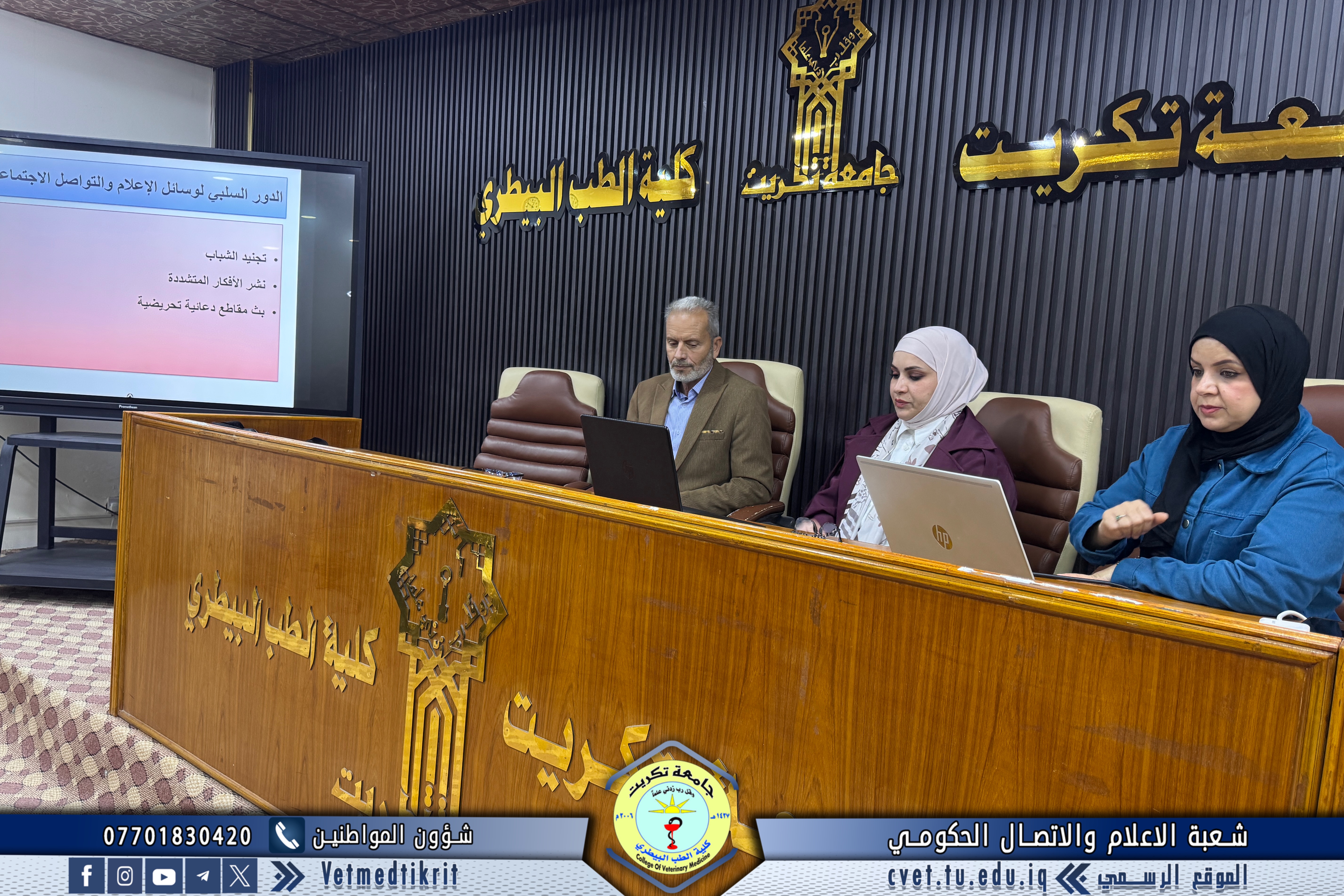 ضمن فعاليات الأسبوع العالمي لريادة الأعمال، وبرعاية الأستاذ الدكتور وعد محمود رؤوف رئيس جامعة تكريت، أقامت وحدة الإرشاد النفسي والتوجيه التربوي في كلية الطب البيطري، وبالتعاون مع كلية الآداب، ندوة علمية بعنوان «دور الإعلام في مواجهة التطرف العنيف والحد من تداعياته على الفرد والمجتمع».