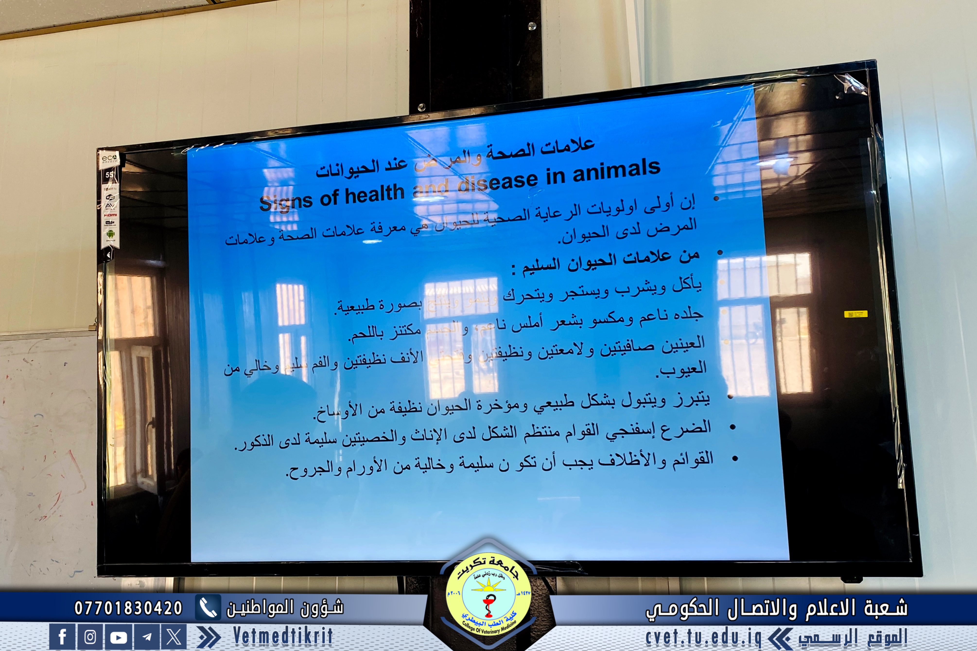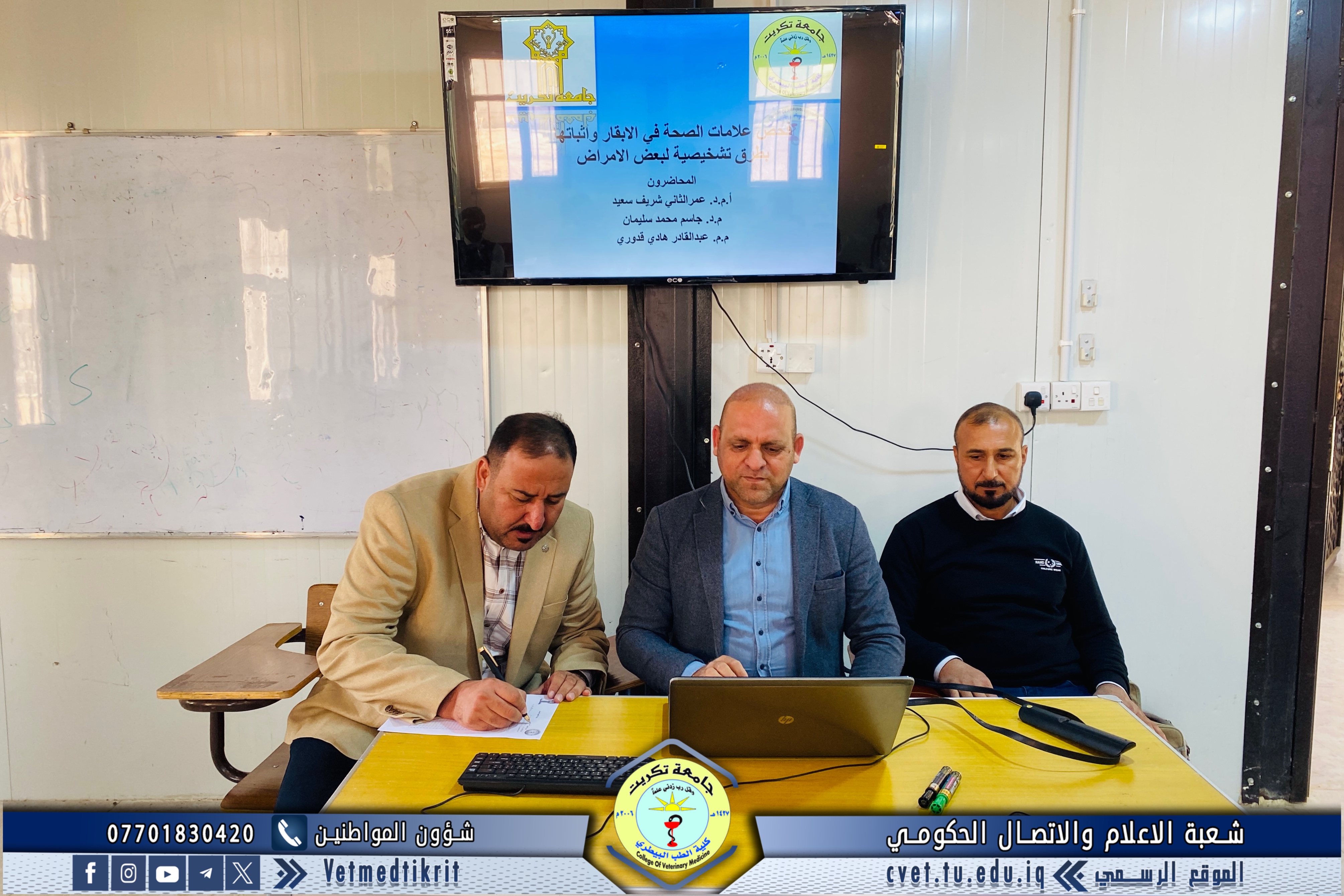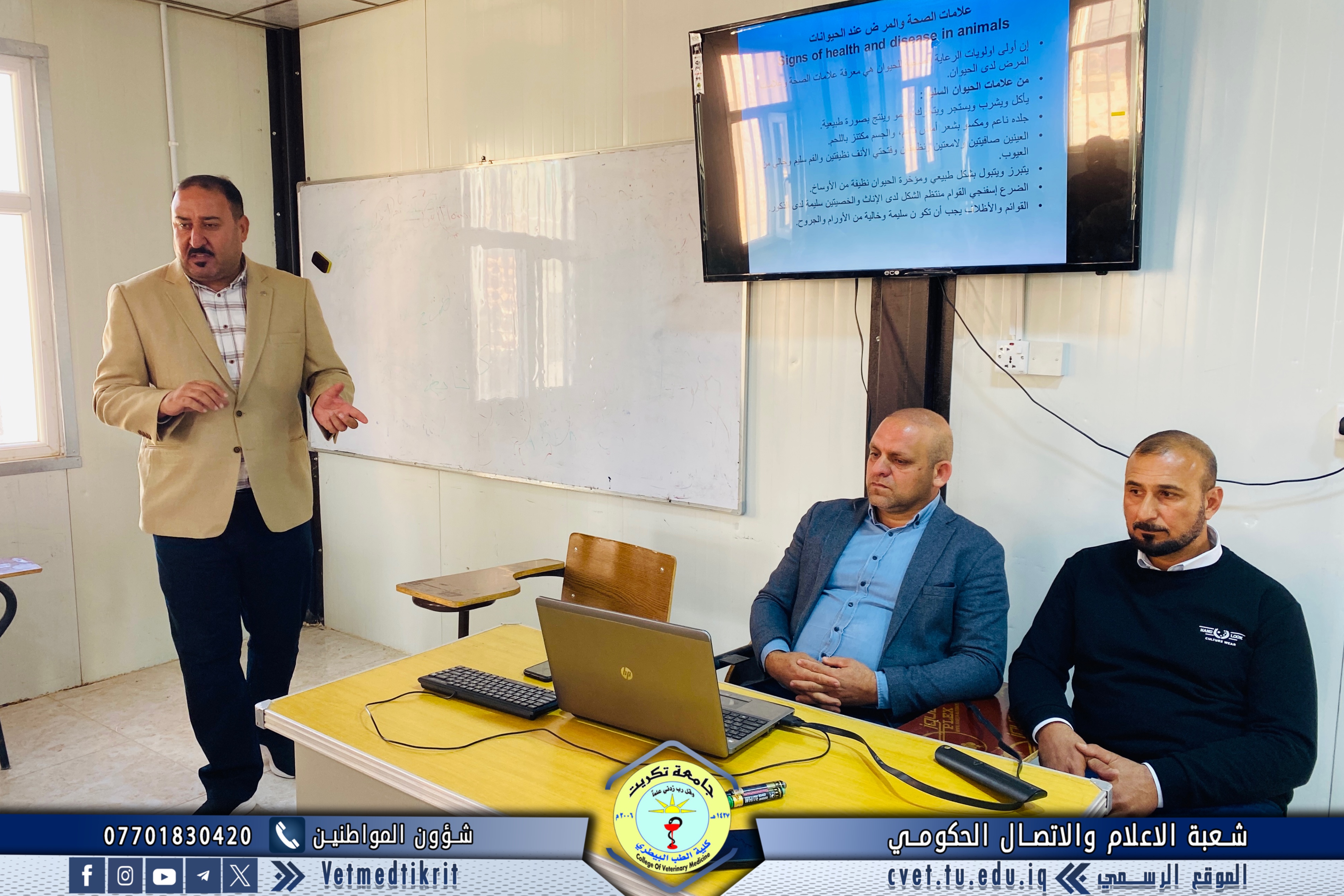 أقامت كلية الطب البيطري في جامعة تكريت، وبالتعاون مع مركز التعليم المستمر، دورة علمية بعنوان: “فحص علامات الصحة في الأبقار وإثباتها بطرق تشخيصية لبعض الأمراض”، حاضر فيها كل من: أ.م.د. عمر الثاني شريف سعيد، م.د. جاسم محمد سليمان، و م.م. عبدالقادر هادي قدوري.
