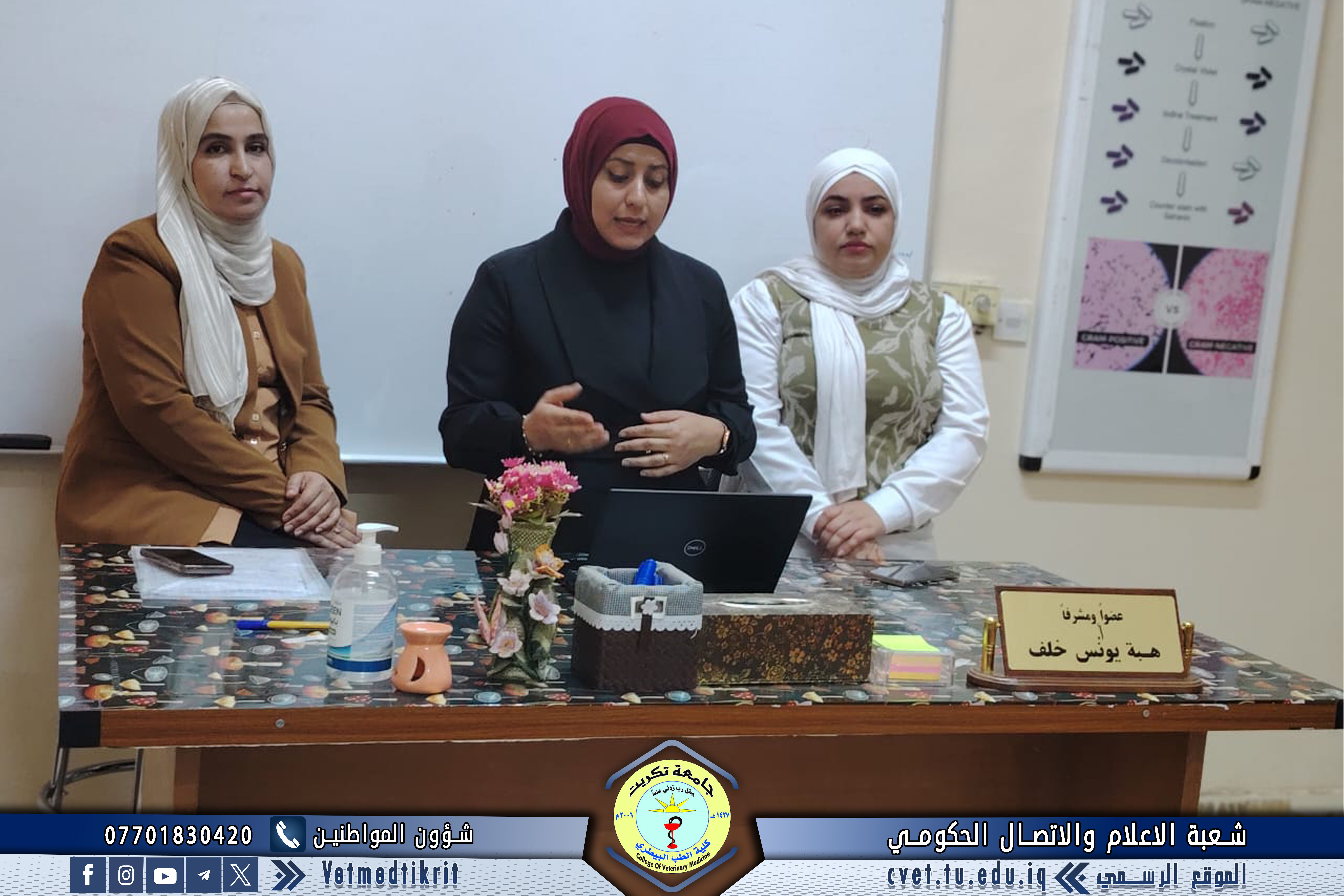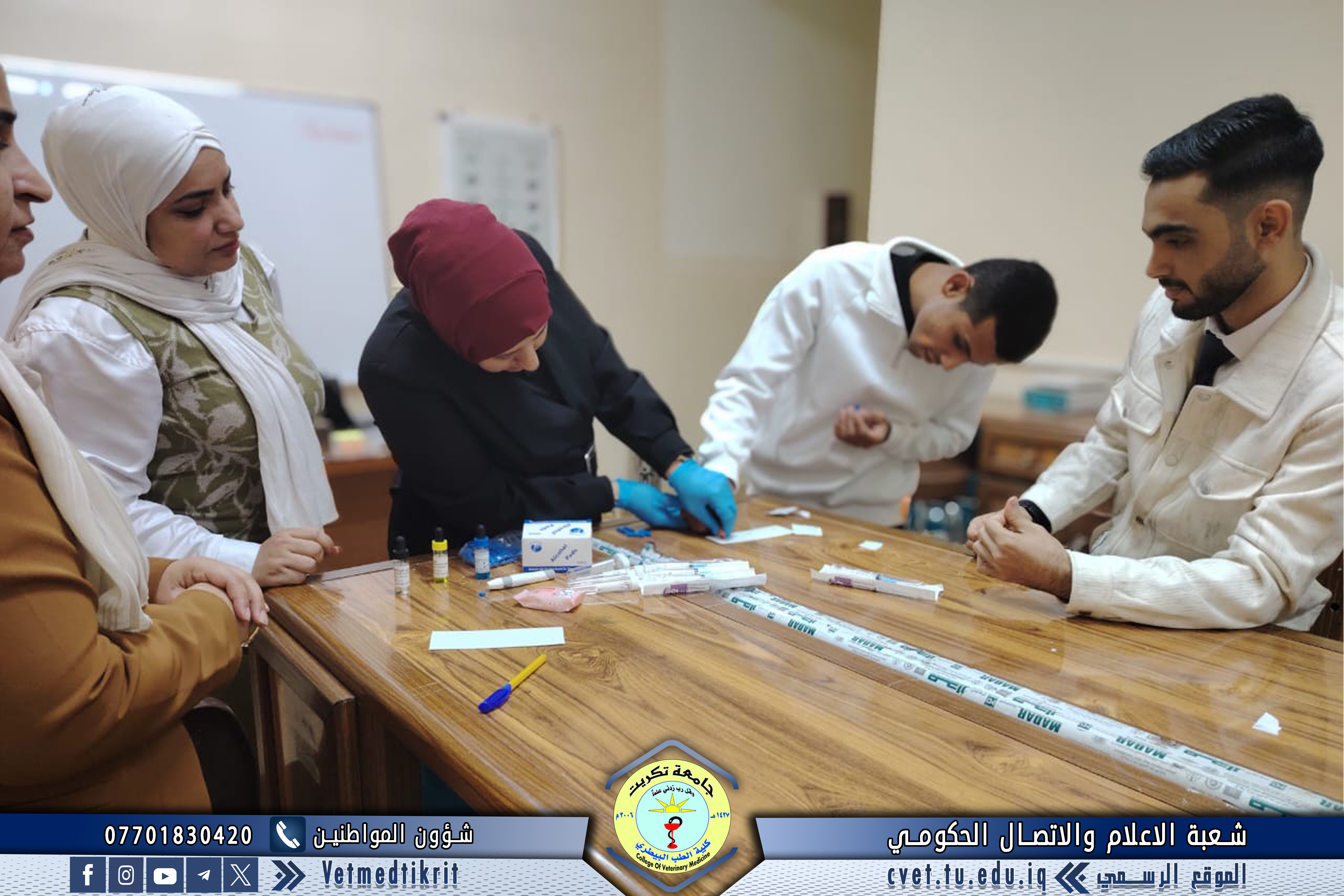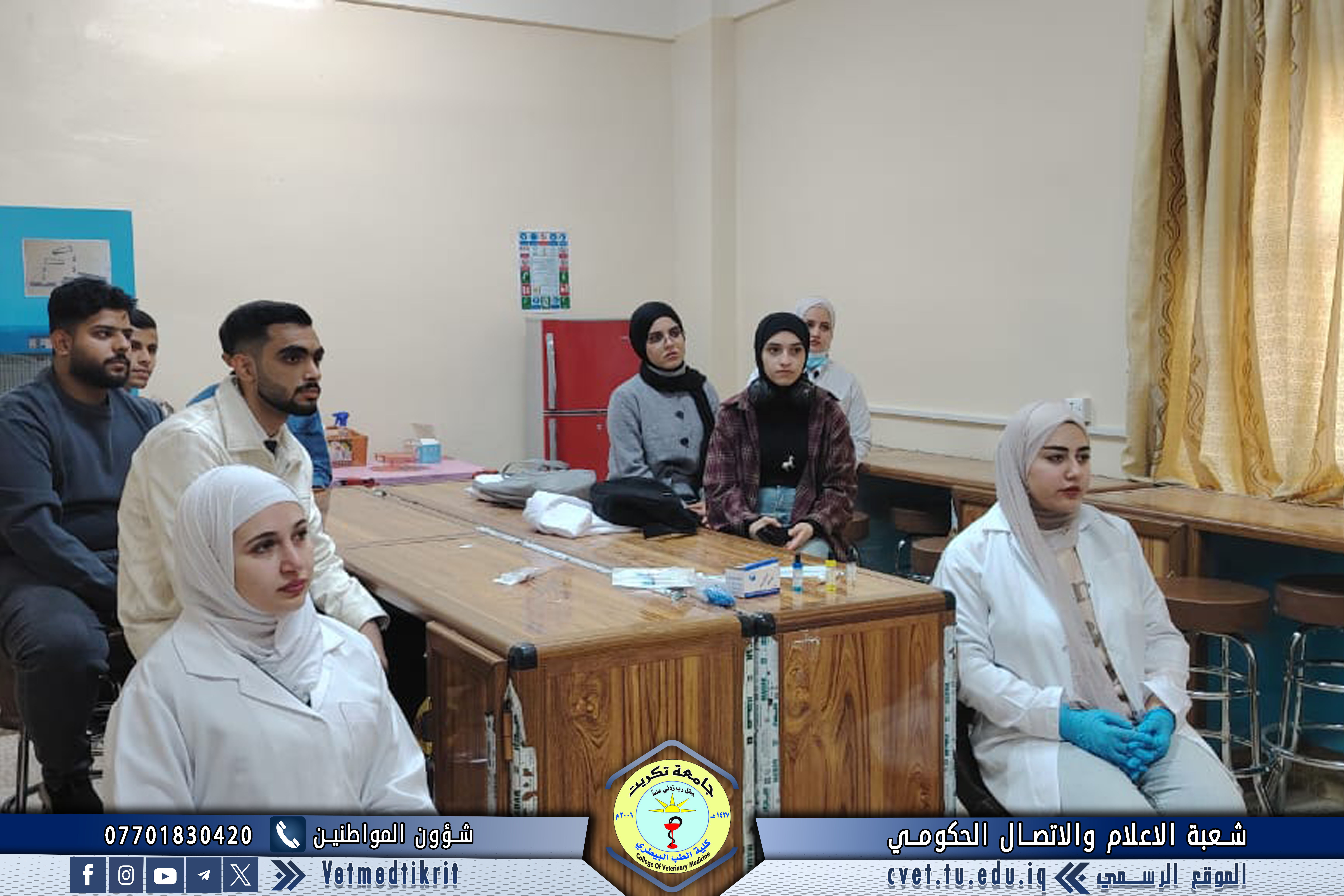 أقامت كلية الطب البيطري في جامعة تكريت بالتعاون مع مركز التعليم المستمر دورة علمية بعنوان "فهم فصائل الدم وسحب الدم من الأساسيات إلى التطبيقات الطبية"، حاضر فيها كل من المدرس المساعد حنين عمر بهجت، و المدرس المساعد مريم أحمد زيدان، و المدرس المساعد رشا جمال خضر.
