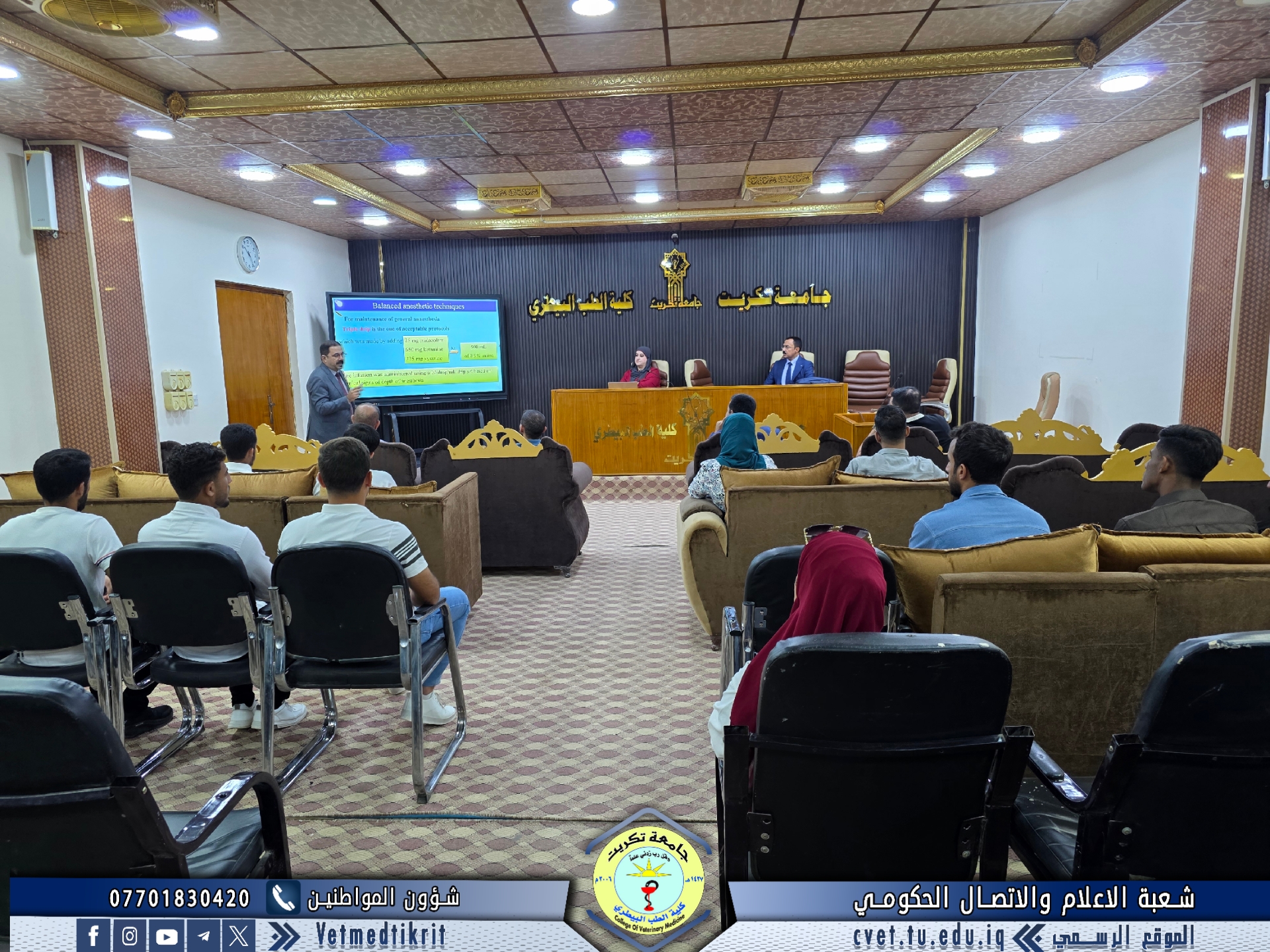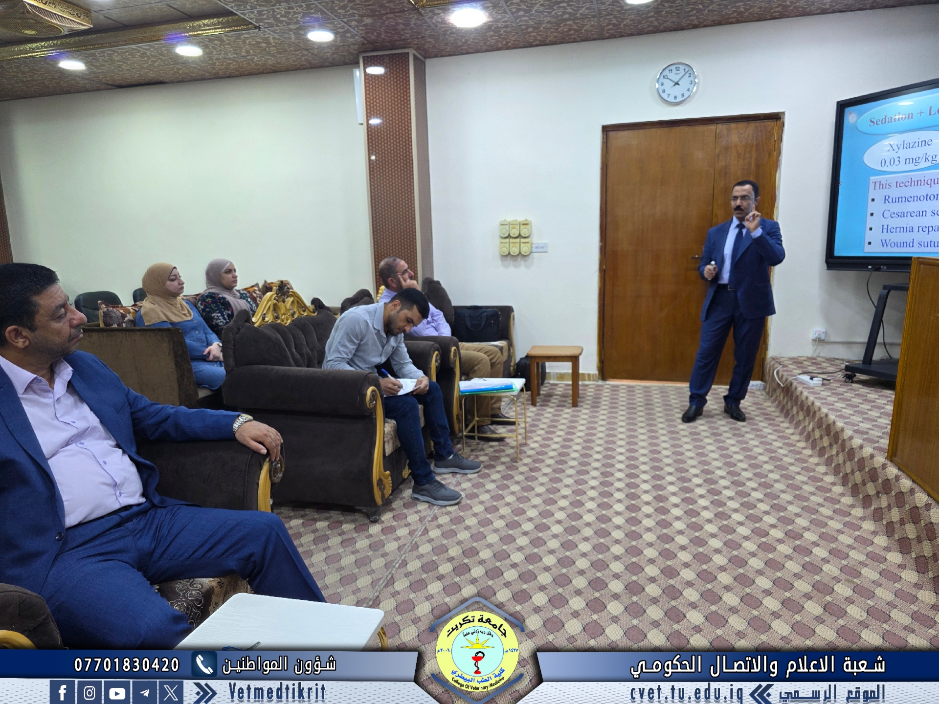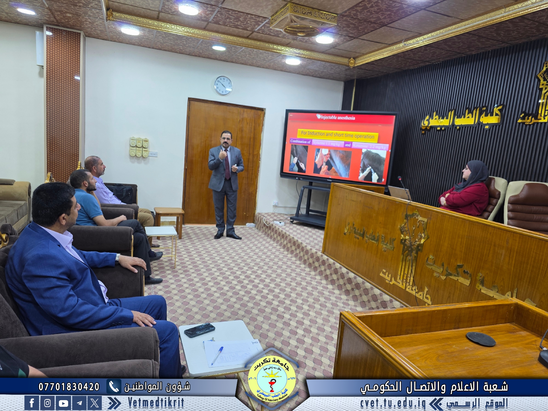 برعاية عمادة كلية الطب البيطري بجامعة تكريت نظمت الكلية دورة علمية بعنوان (إجراء طرق مختلفة لتخدير الحيوانات الأليفة للأغراض الجراحية والتشخيصية)، حاضر فيها كلٌّ من الأستاذ المساعد الدكتور منتصر محمد هلال**، و**الأستاذ المساعد الدكتور صدام خالد حمادي**، و**الأستاذ المساعد الدكتورة هبة عبدالعزيز شيخو**.