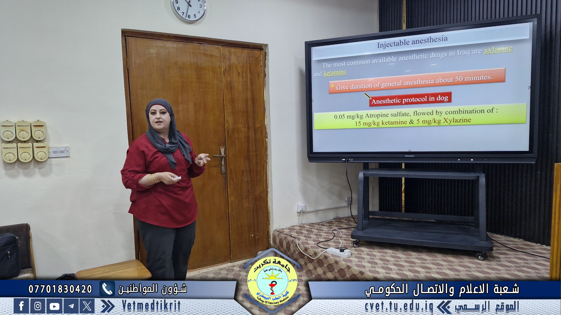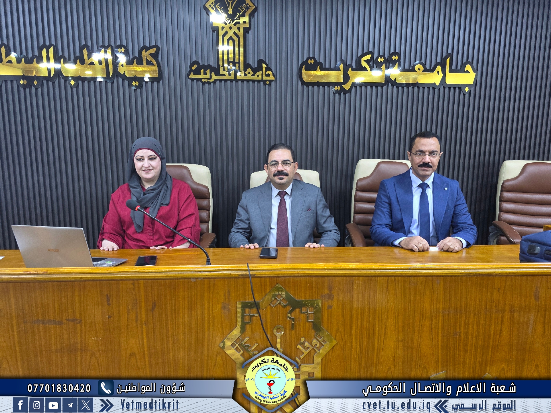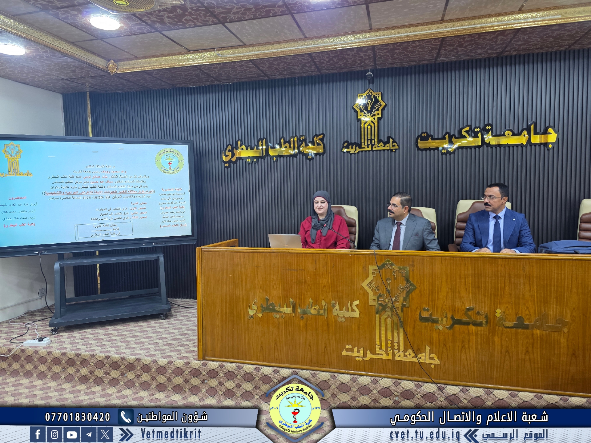 برعاية عمادة كلية الطب البيطري بجامعة تكريت نظمت الكلية دورة علمية بعنوان (إجراء طرق مختلفة لتخدير الحيوانات الأليفة للأغراض الجراحية والتشخيصية)، حاضر فيها كلٌّ من الأستاذ المساعد الدكتور منتصر محمد هلال**، و**الأستاذ المساعد الدكتور صدام خالد حمادي**، و**الأستاذ المساعد الدكتورة هبة عبدالعزيز شيخو**.