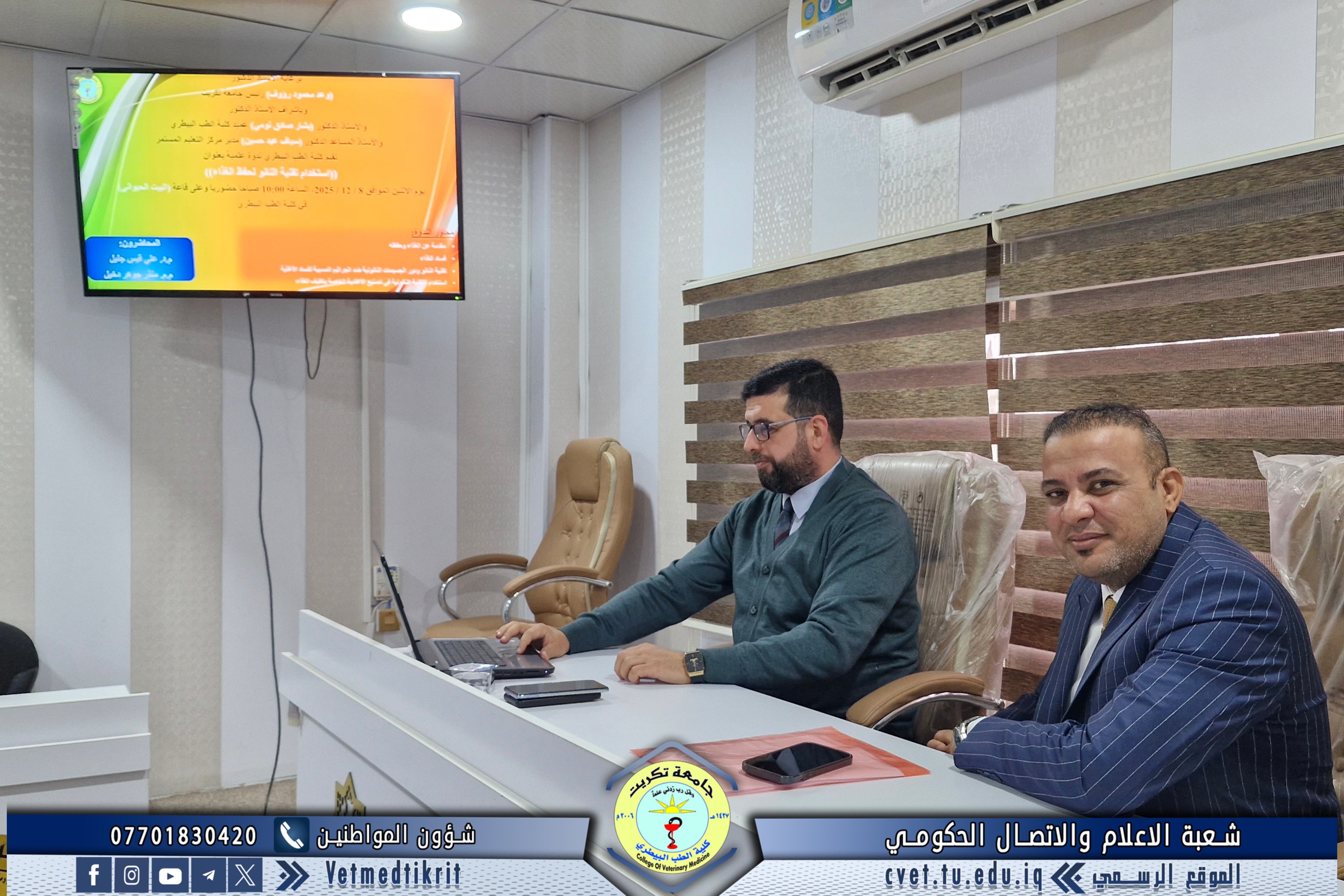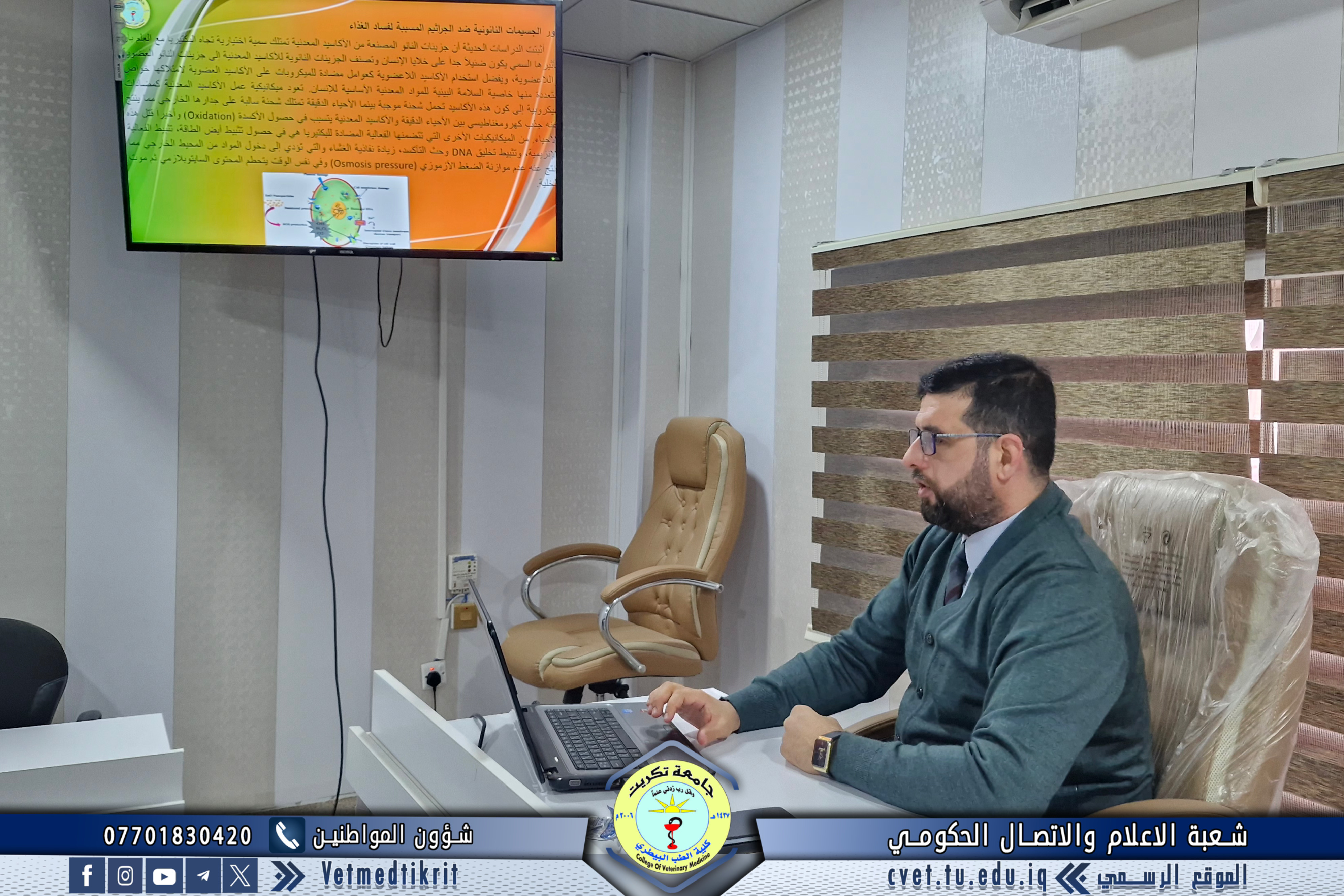 برعاية عمادة كلية الطب البيطري وبالتعاون مع مركز التعليم المستمر في جامعة تكريت، نظّمت الكلية ندوة علمية بعنوان “استخدام تقنية النانو في حفظ الغذاء”، قدّمها كل من م.د. علي قيس جليل و م.م. منذر جوهر دخيل بمشاركة عدد من التدريسيين.