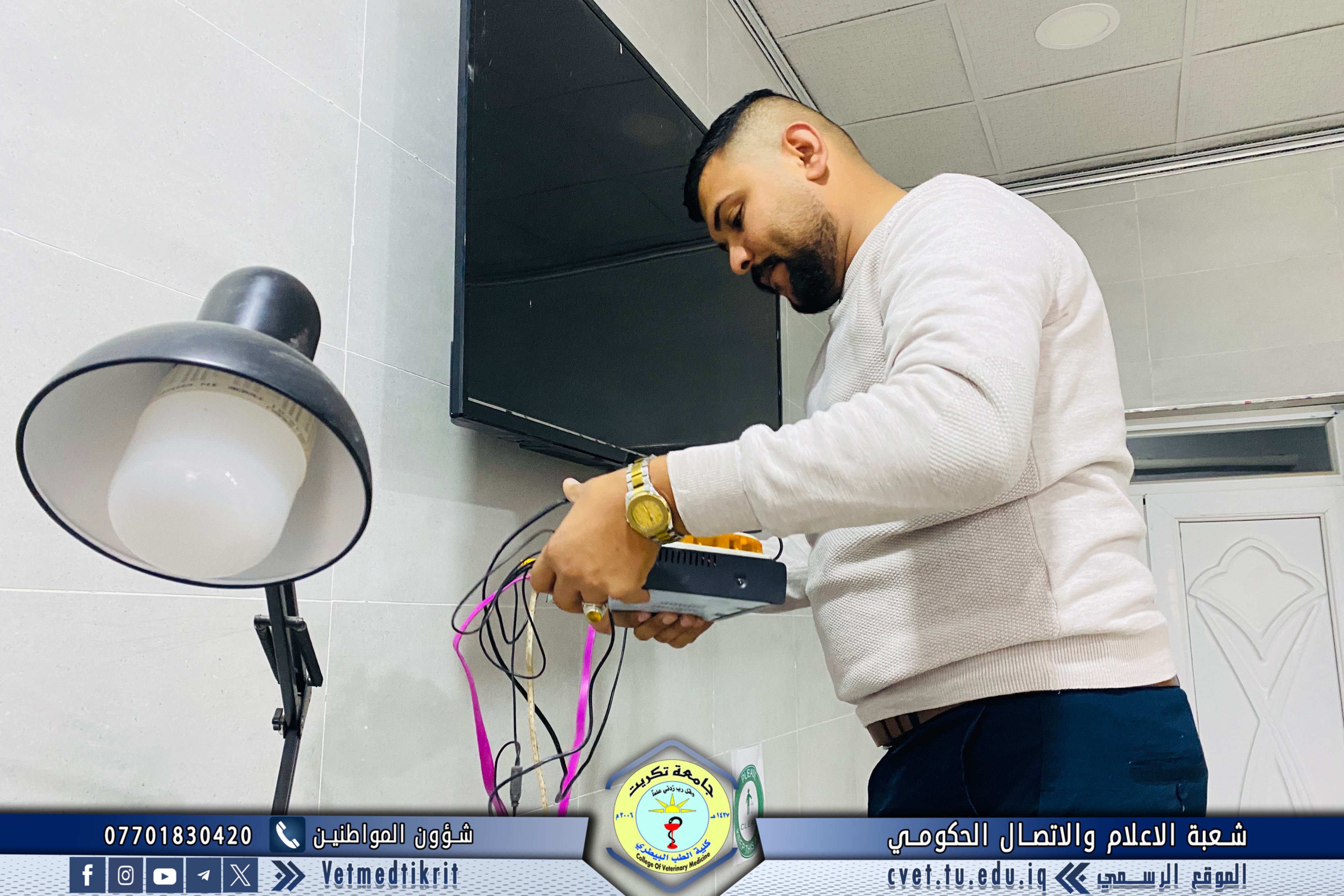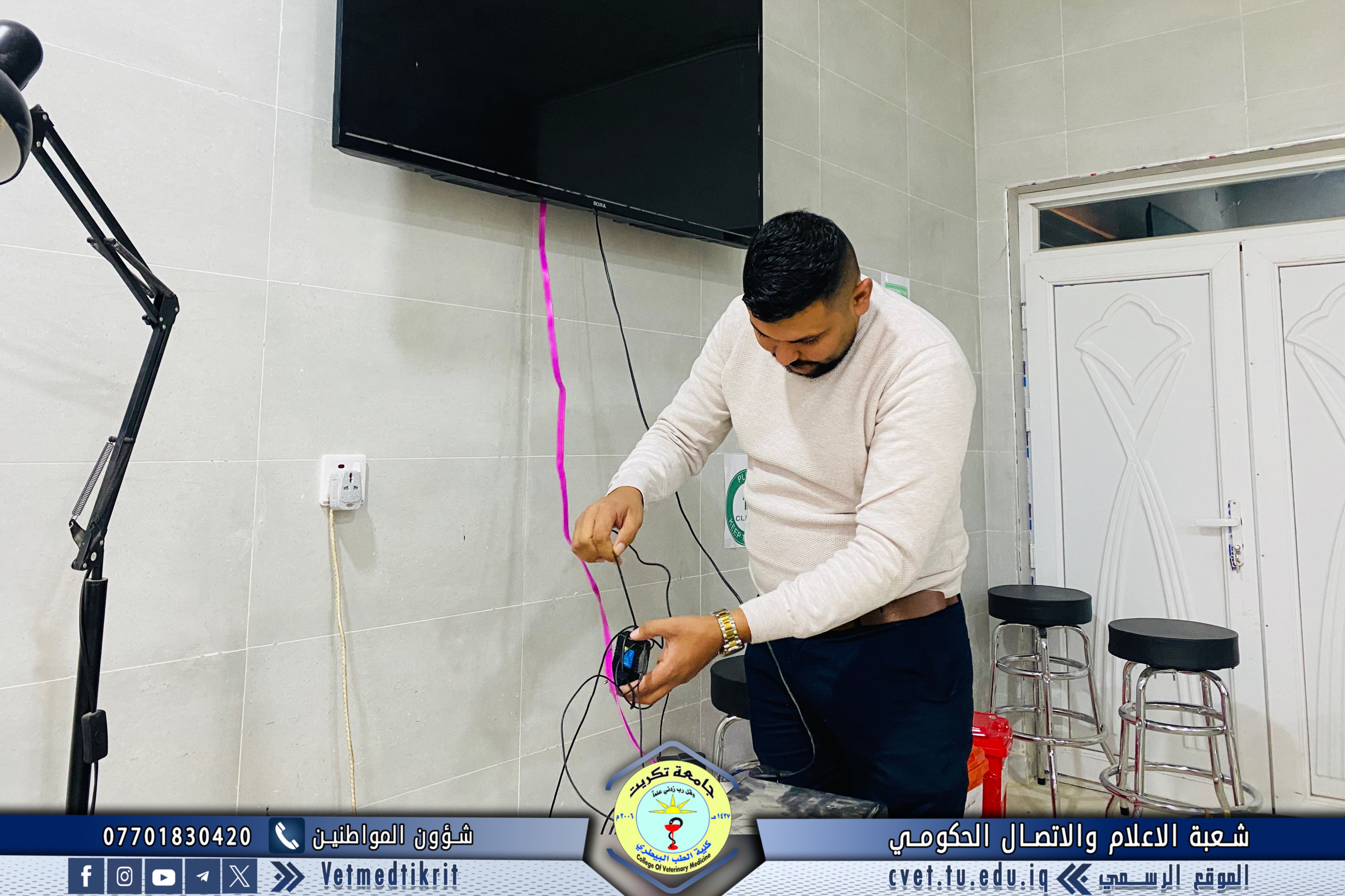 ضمن جهودها المستمرة لدعم العملية التعليمية وتعزيز الجانب التطبيقي، قامت شعبة الإعلام والاتصال الحكومي في كلية الطب البيطري بتجهيز مختبر الجراحة بكاميرا حديثة ومتطورة، تُستخدم لتصوير العمليات الجراحية وعرضها مباشرة على الشاشة داخل المختبر.
