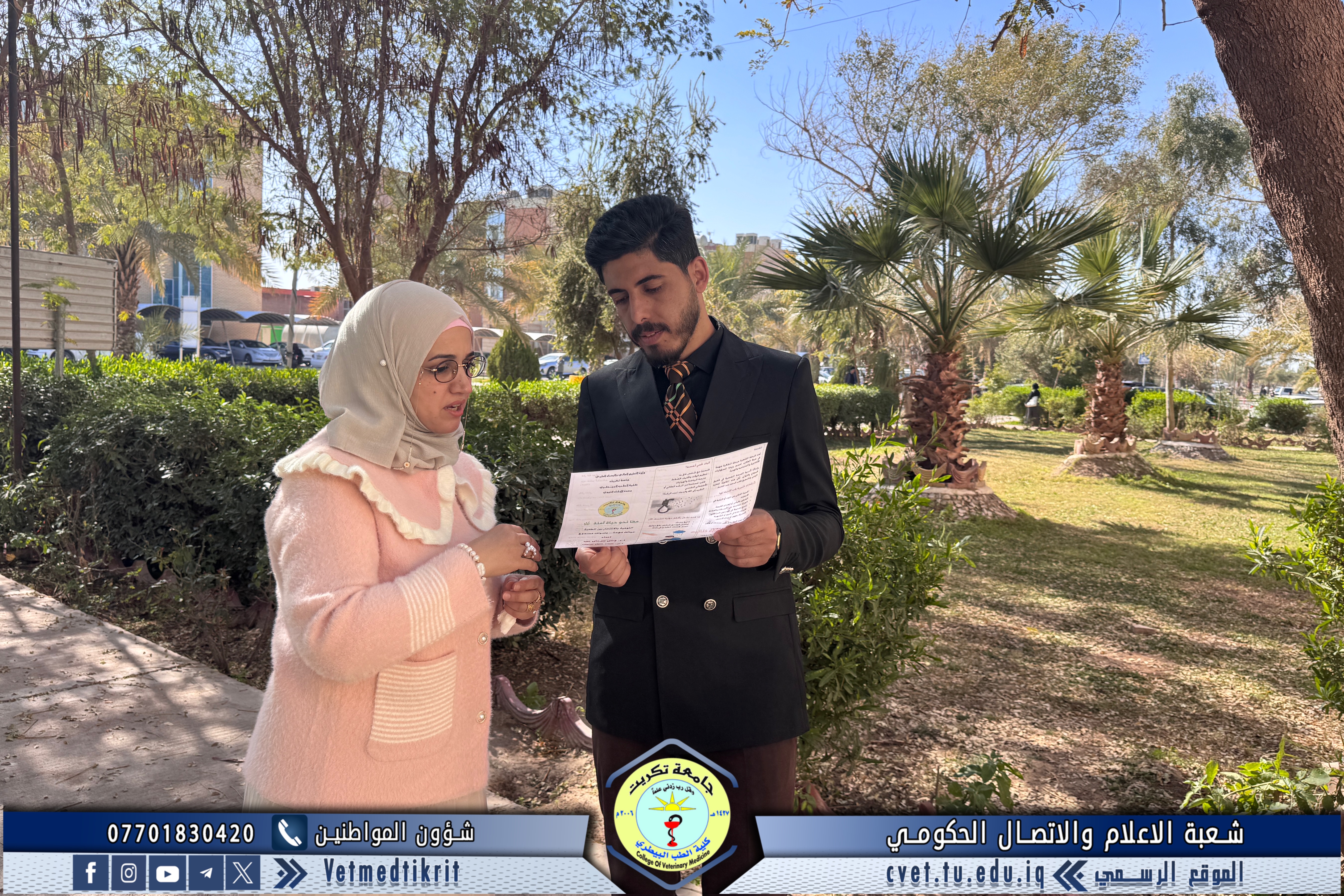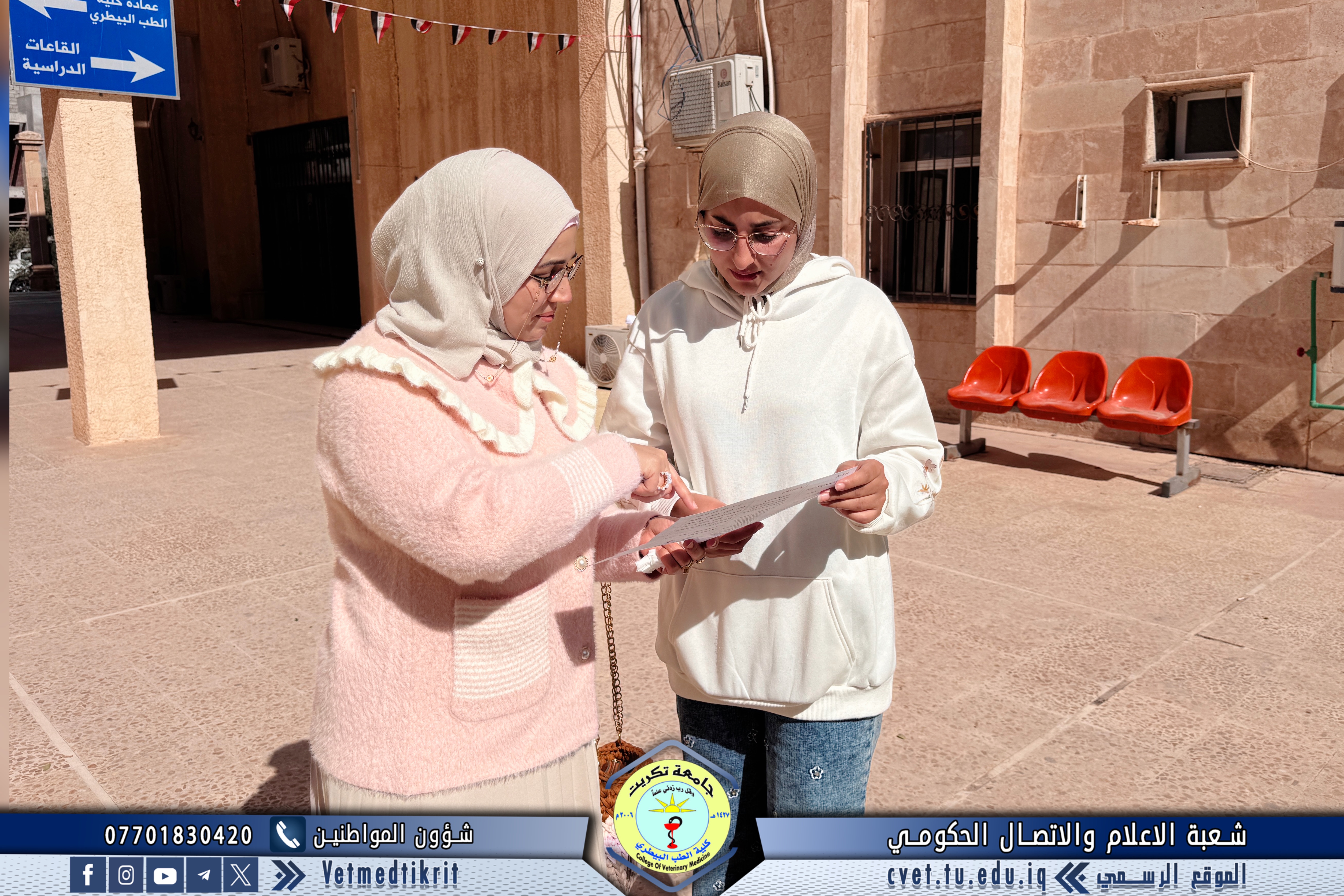 أقامت وحدة الإرشاد النفسي والتوجيه التربوي في كلية الطب البيطري حملة توعوية بعنوان: (معًا نحو حياة آمنة.. حياتك مهمة وصوتك مسموع)، انطلاقًا من مسؤوليتها في دعم الصحة النفسية لطلبة الكلية وتعزيز بيئة جامعية آمنة وداعمة.