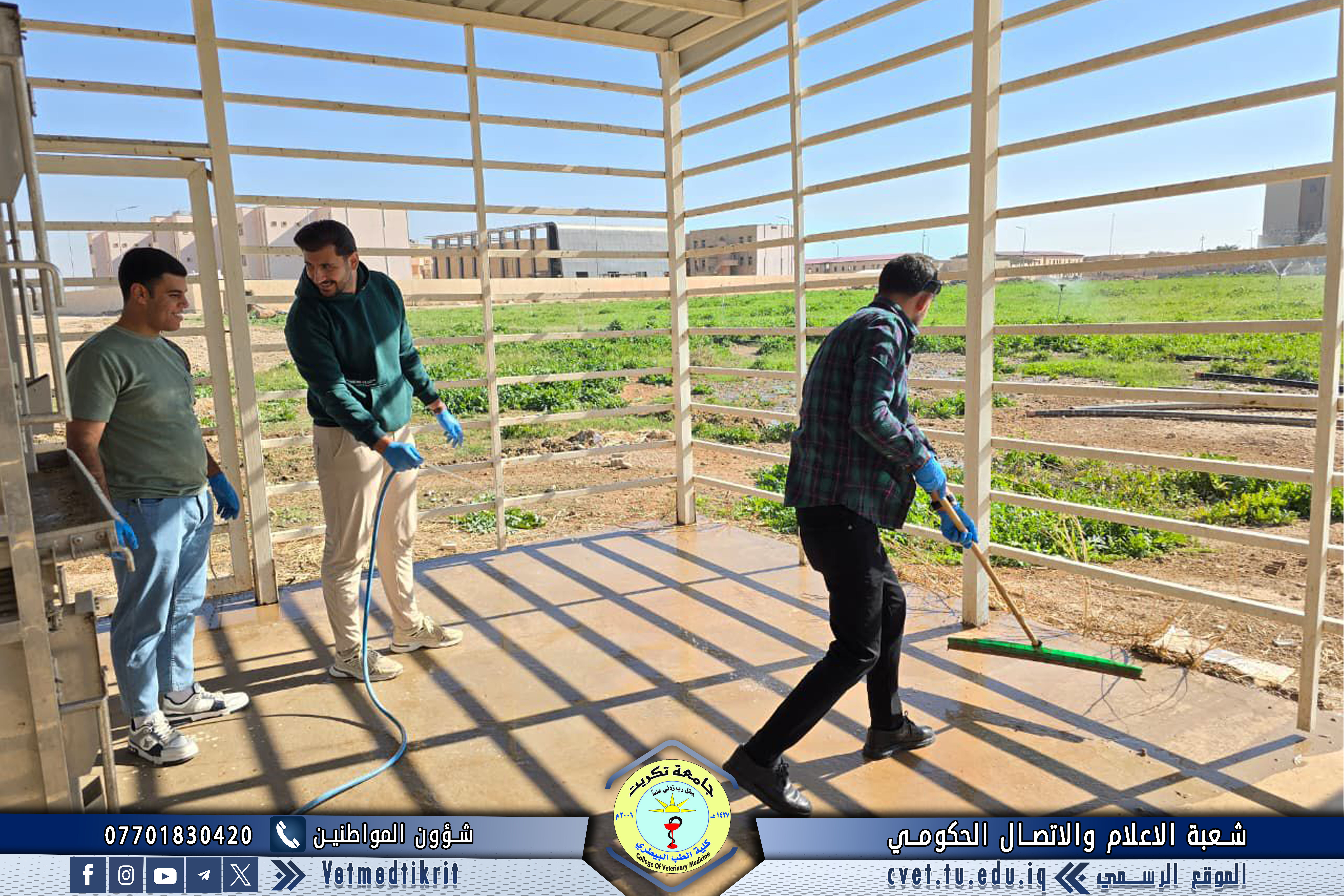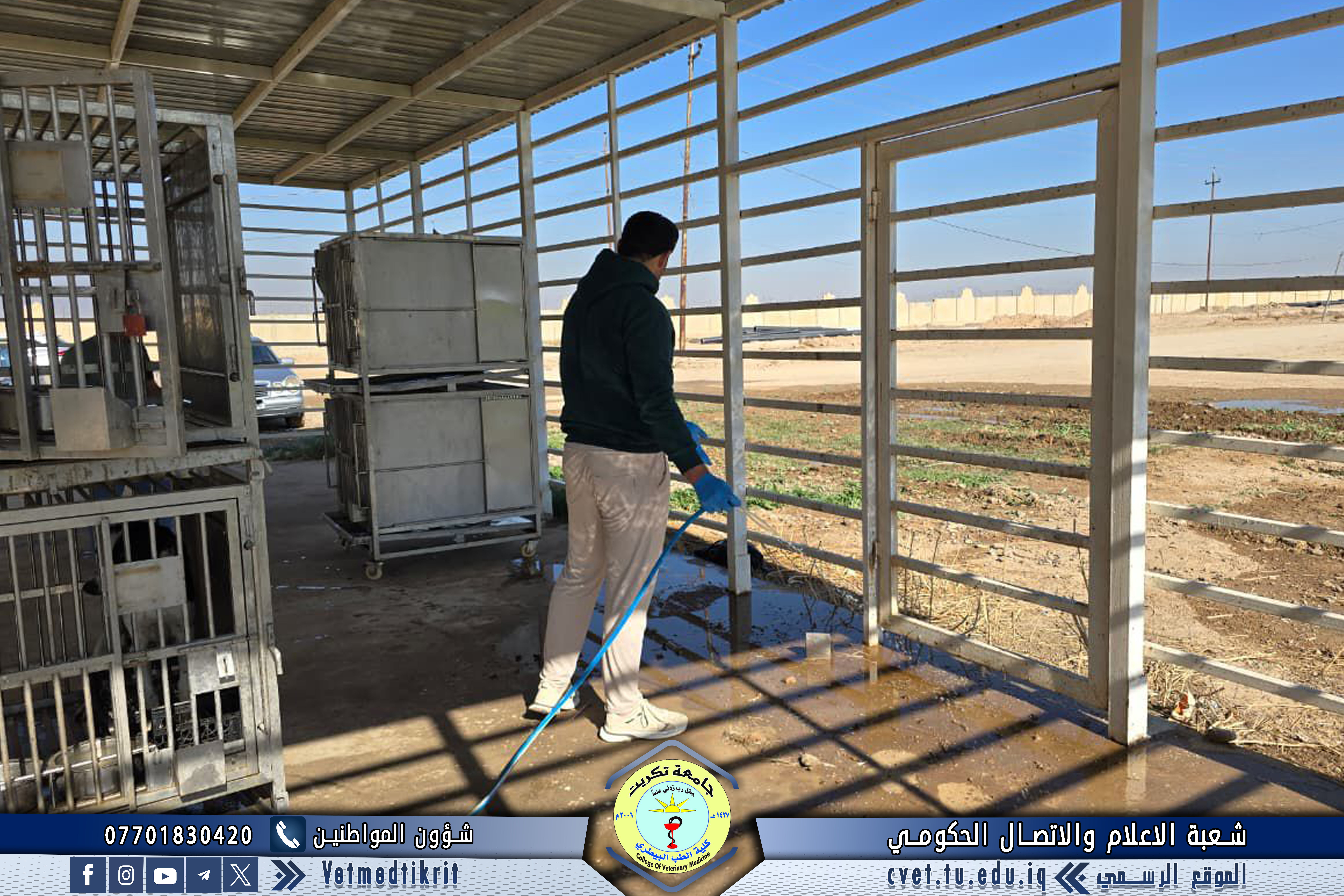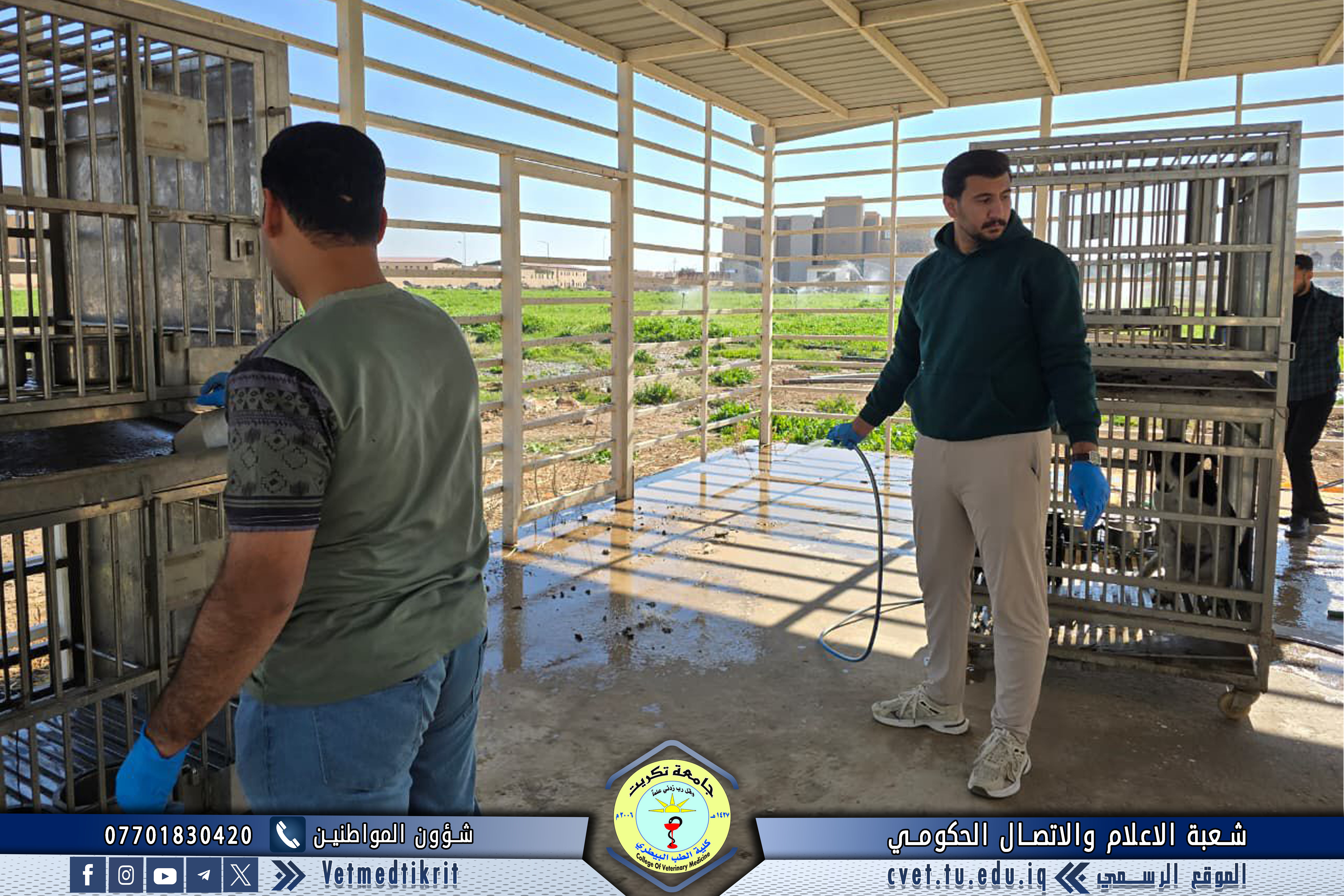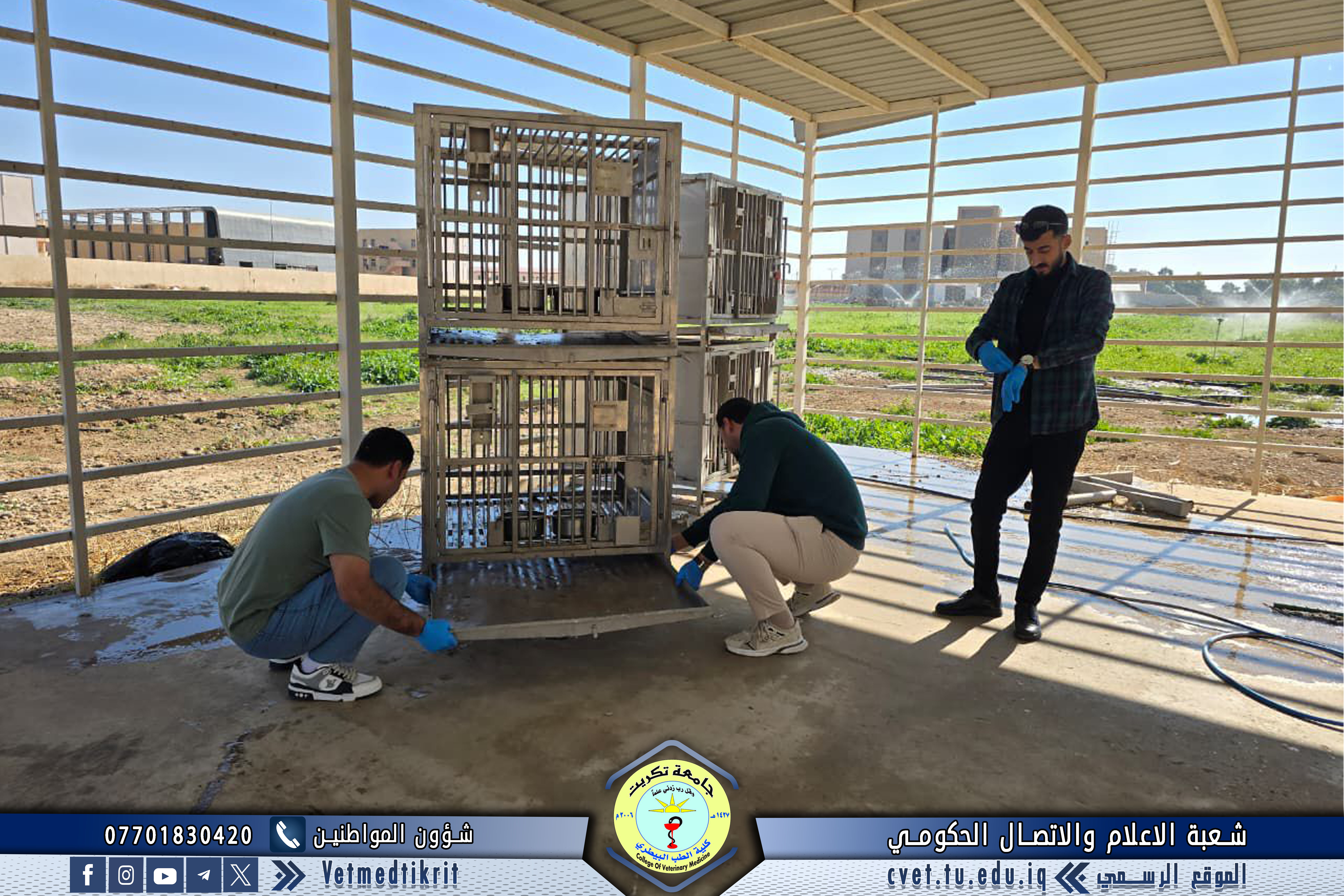 بروحٍ عالية من المسؤولية والانتماء، شارك عدد من طلبة كلية الطب البيطري بجامعة تكريت، وهم: محمد محفوظ رمضان، مهاجر حسن طاهر و أحمد حافظ جاسم، في عملٍ تطوعي تضمن تنظيف وإعادة تجهيز أقفاص تربية الكلاب في البيت الحيواني، بهدف استخدامها في إيواء الحيوانات المخصّصة للدروس والتطبيقات العملية.