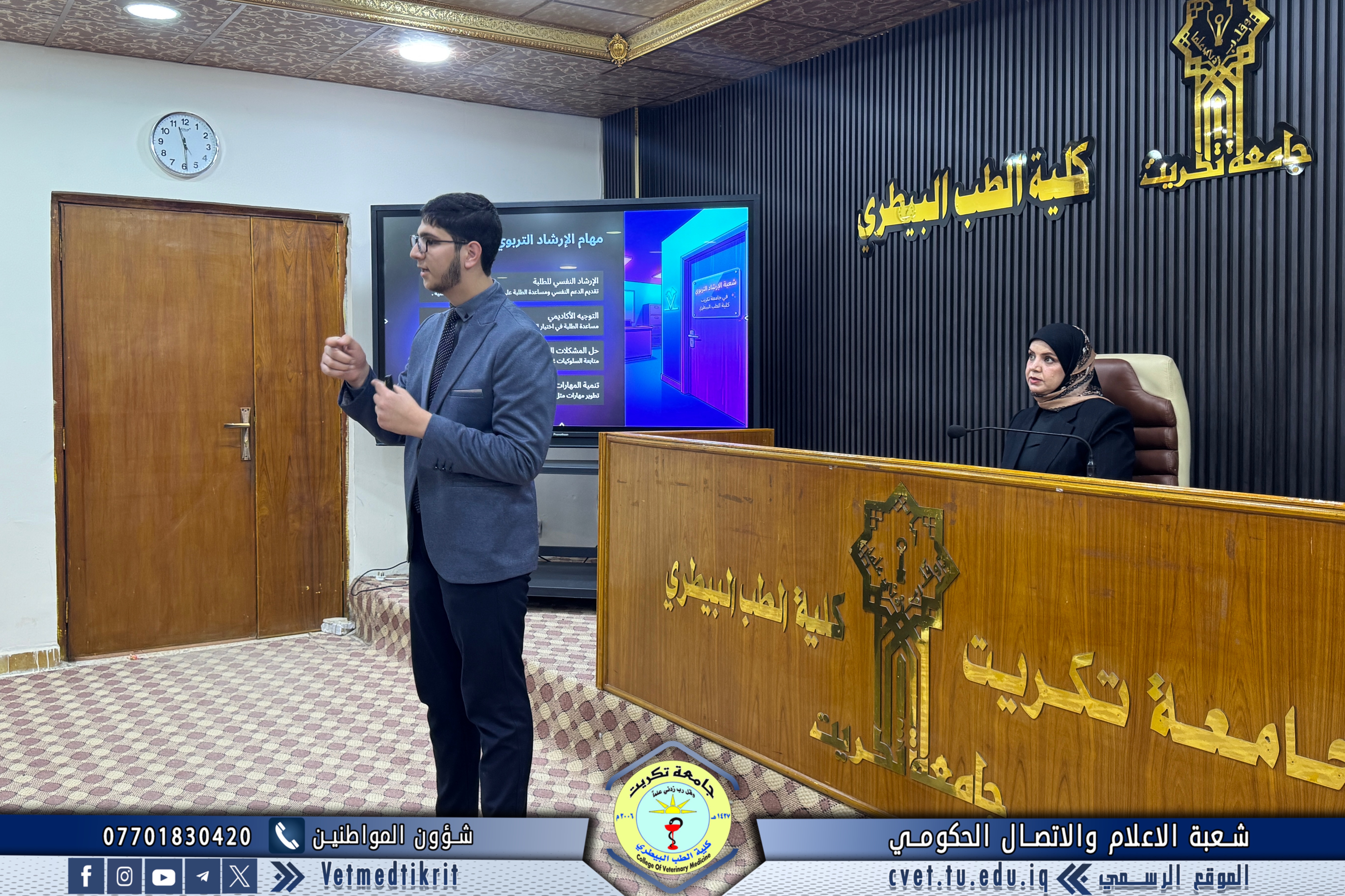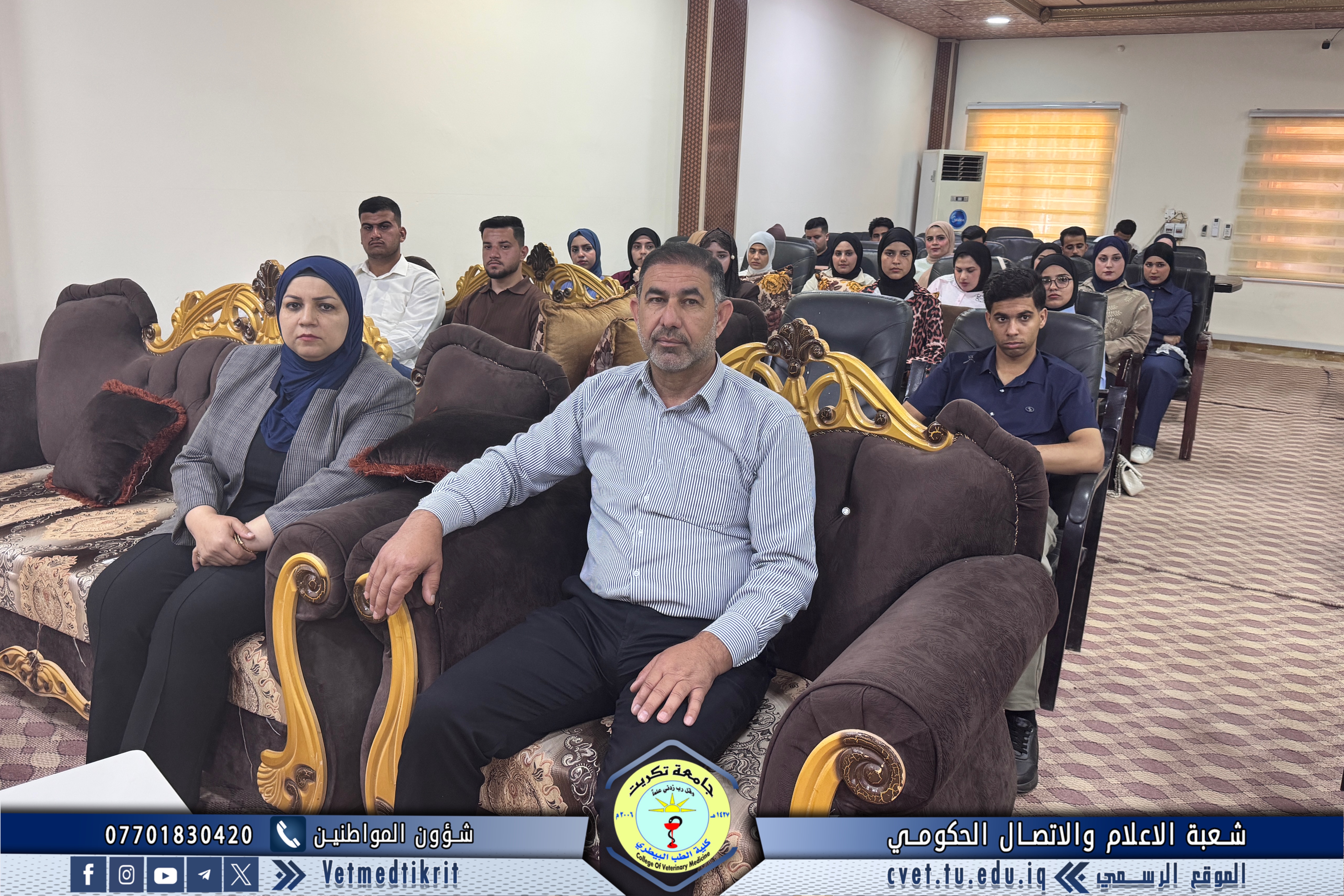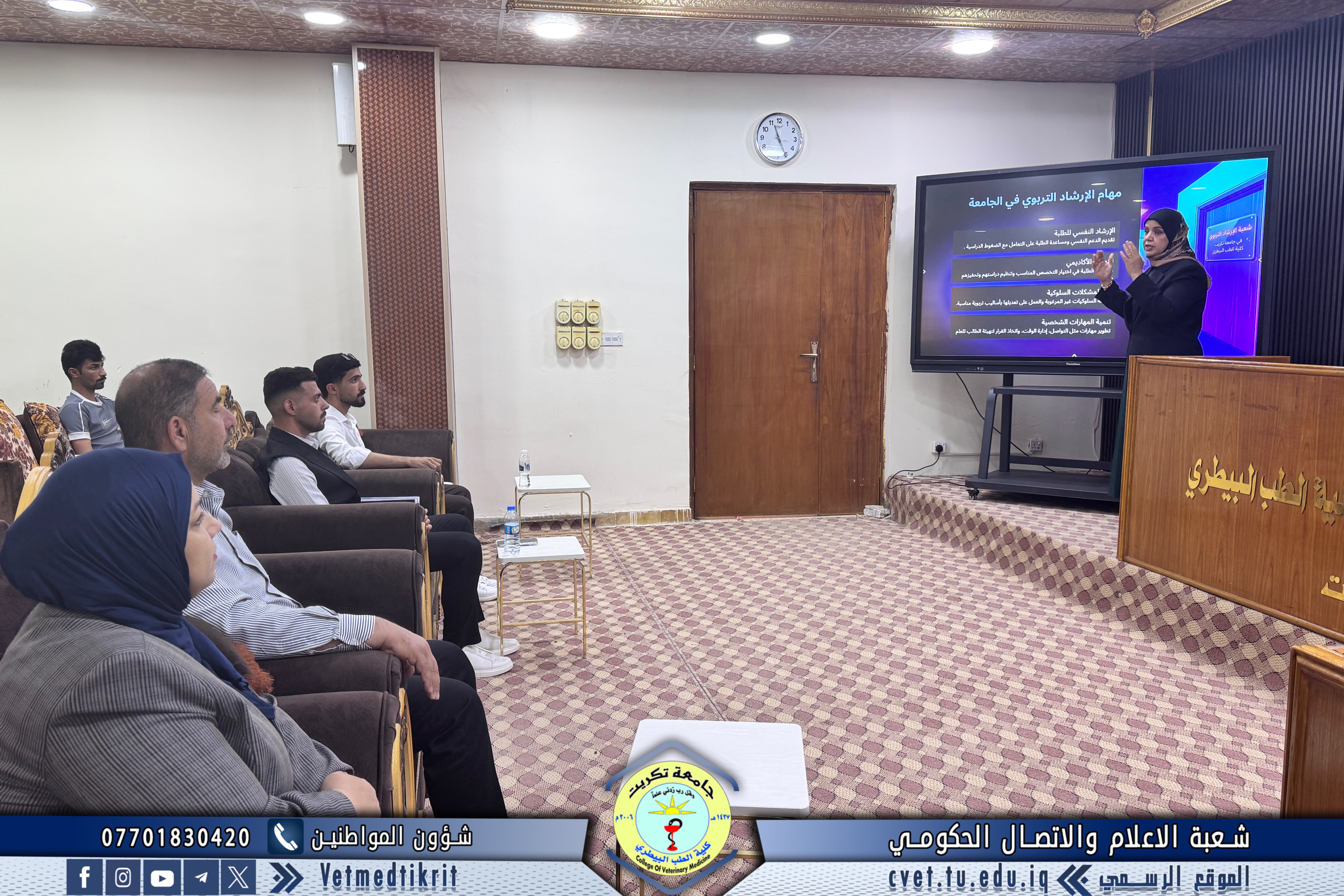 أقامت كلية الطب البيطري في جامعة تكريت، وبالتعاون مع مركز التعليم المستمر في جامعة تكريت، وضمن توجيهات وحدة الإرشاد النفسي والتوجيه التربوي في الكلية، ندوة توعوية بعنوان (دليل الطالب في كلية الطب البيطري)، وذلك على قاعة د. مهند ماهر.