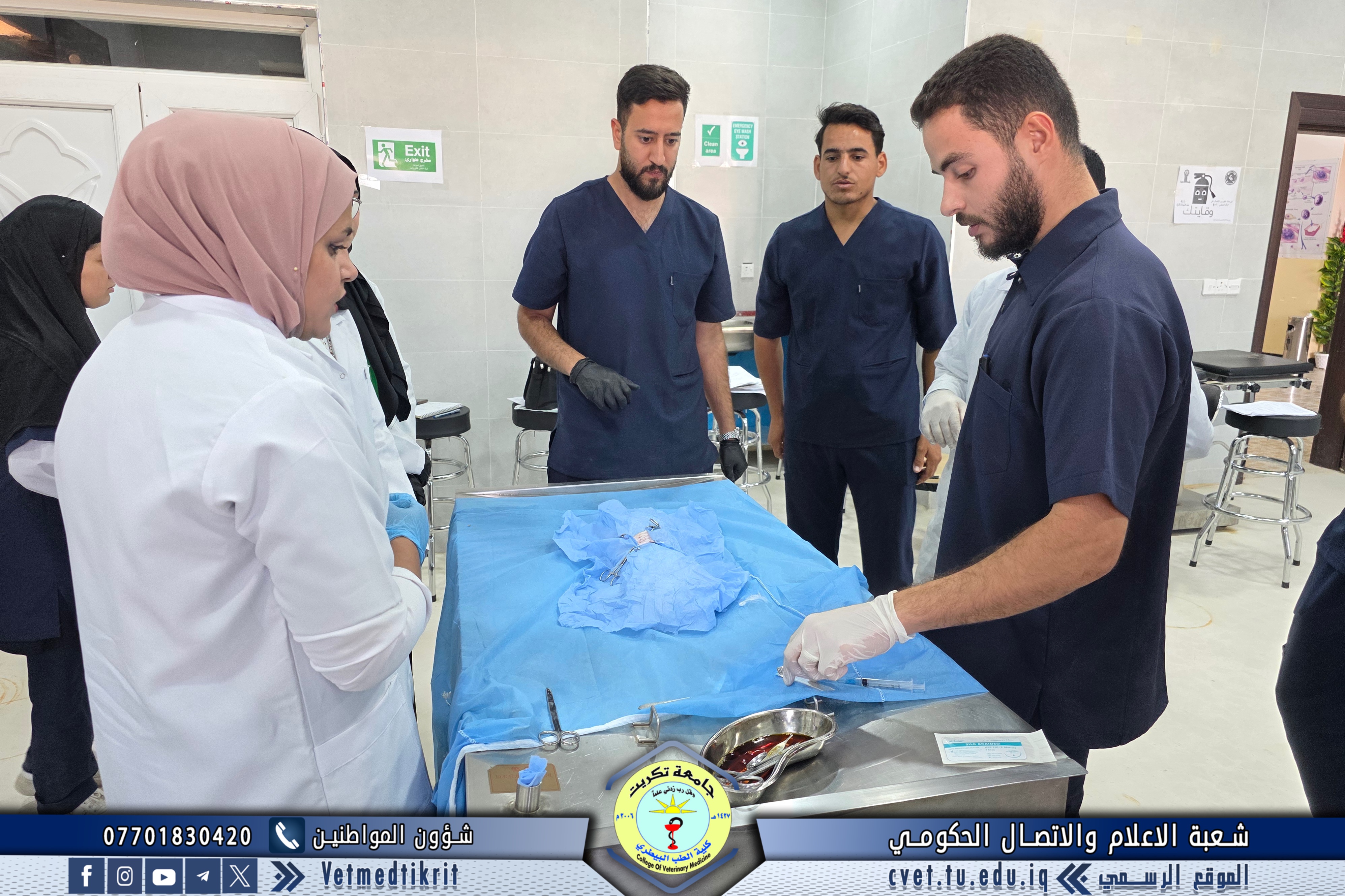 يواصل طلبة المراحل المنتهية في كلية الطب البيطري بجامعة تكريت مشاركتهم في المحاضرات التطبيقية بإشراف أساتذة المواد الدراسية، وذلك ضمن منهج التطبيق البيطري العملي المعتمد للمراحل الرابعة والخامسة، والذي يهدف إلى تعزيز مهارات الطلبة وربط الجانب النظري بالتطبيقي.