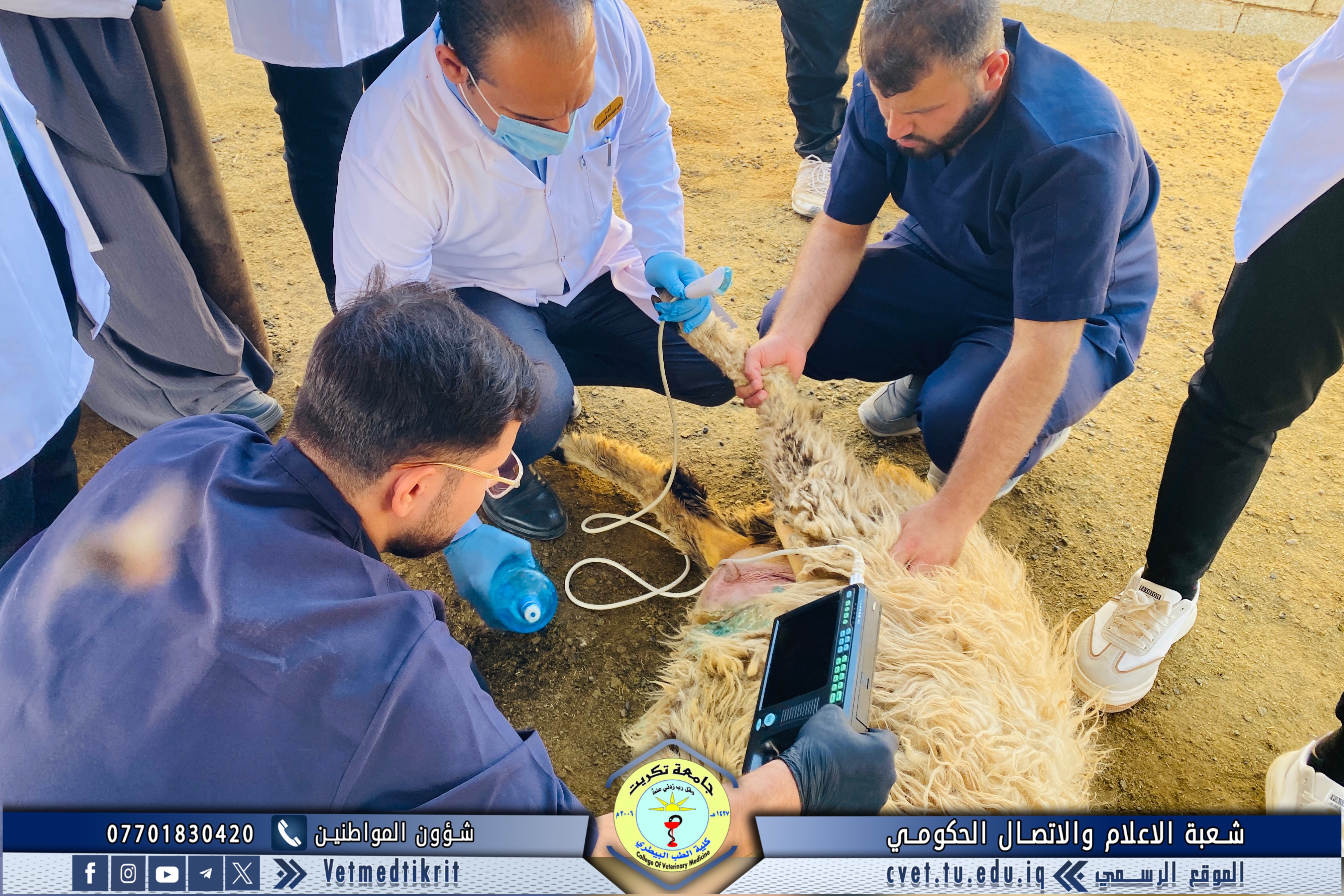 كما شمل التدريب تعلم طرق فحص الحمل في النعاج باستخدام الطرق اليدوية وأجهزة السونار، بالاعتماد على قطيع النعاج المربى في البيت الحيواني التابع للكلية، مما أتاح للطلبة تجربة عملية مباشرة في التعامل مع الحالات الحقلية.