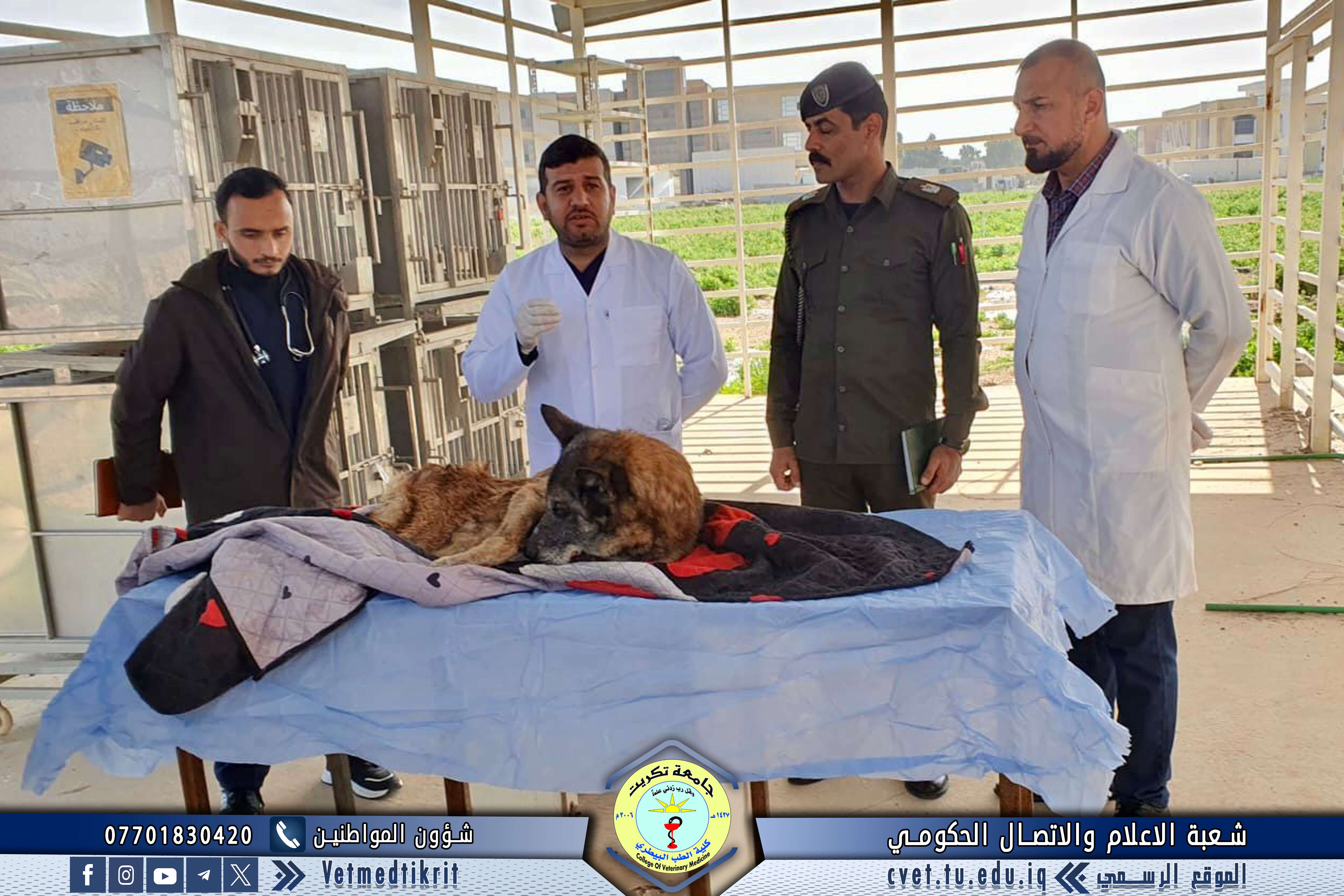 ضمن نشاطاتها المستمرة في تقديم الخدمات البيطرية المجانية وخدمة مؤسسات الدولة، استقبلت وحدة العيادة البيطرية في كلية الطب البيطري بجامعة تكريت حالة كلب بوليسي تابع لقيادة شرطة محافظة صلاح الدين، وذلك بمشاركة طلبة المرحلة الرابعة، في إطار تعزيز الجانب العملي والتطبيقي ضمن مفردات التدريب السريري.