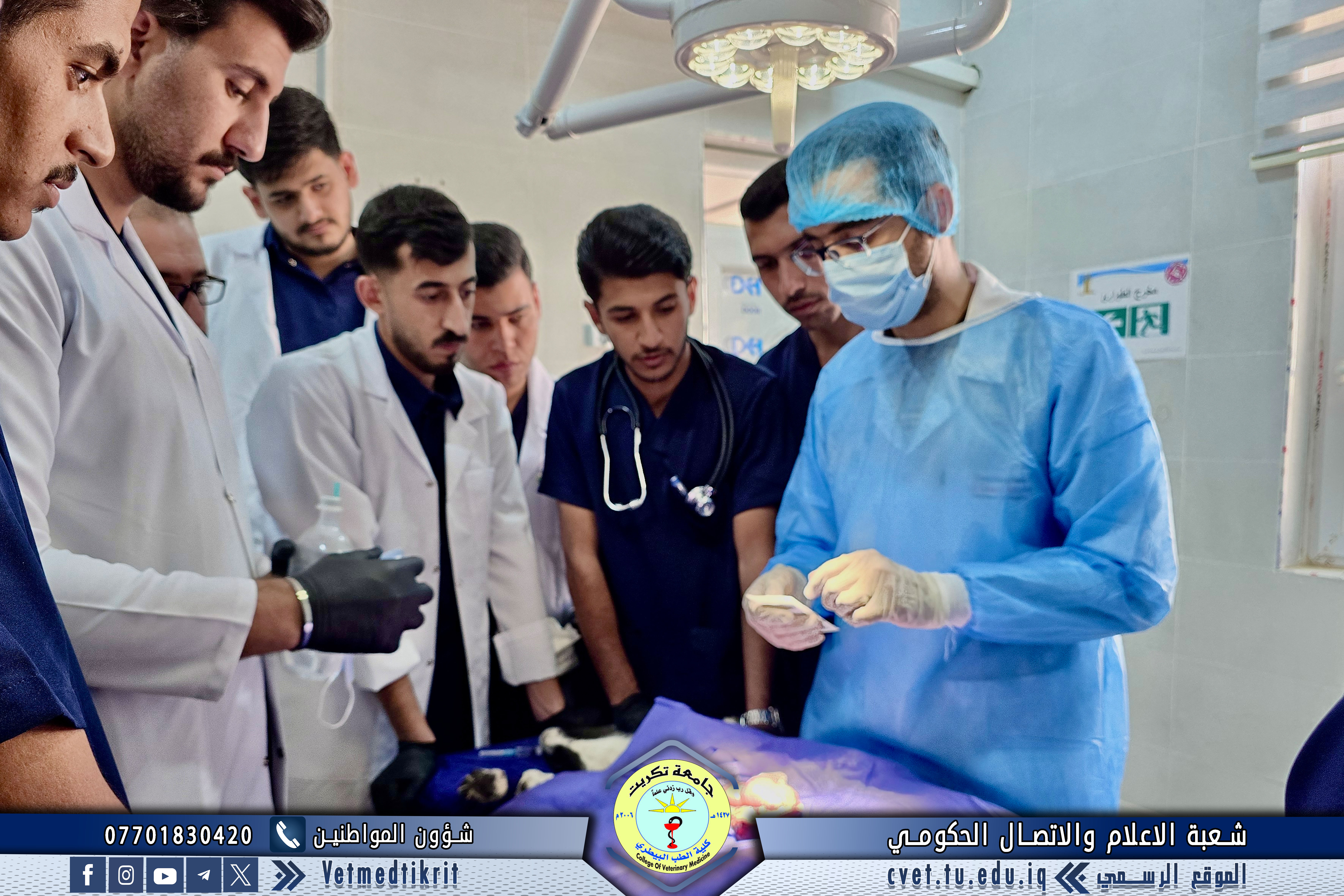 ضمن المنهاج العملي لمادة الجراحة البيطرية، استقبلت وحدة العيادة الخارجية طلبة المرحلة الخامسة للتدريب العملي على العمليات الجراحية، وذلك بإشراف الأستاذ المساعد الدكتور علي غازي عطية.