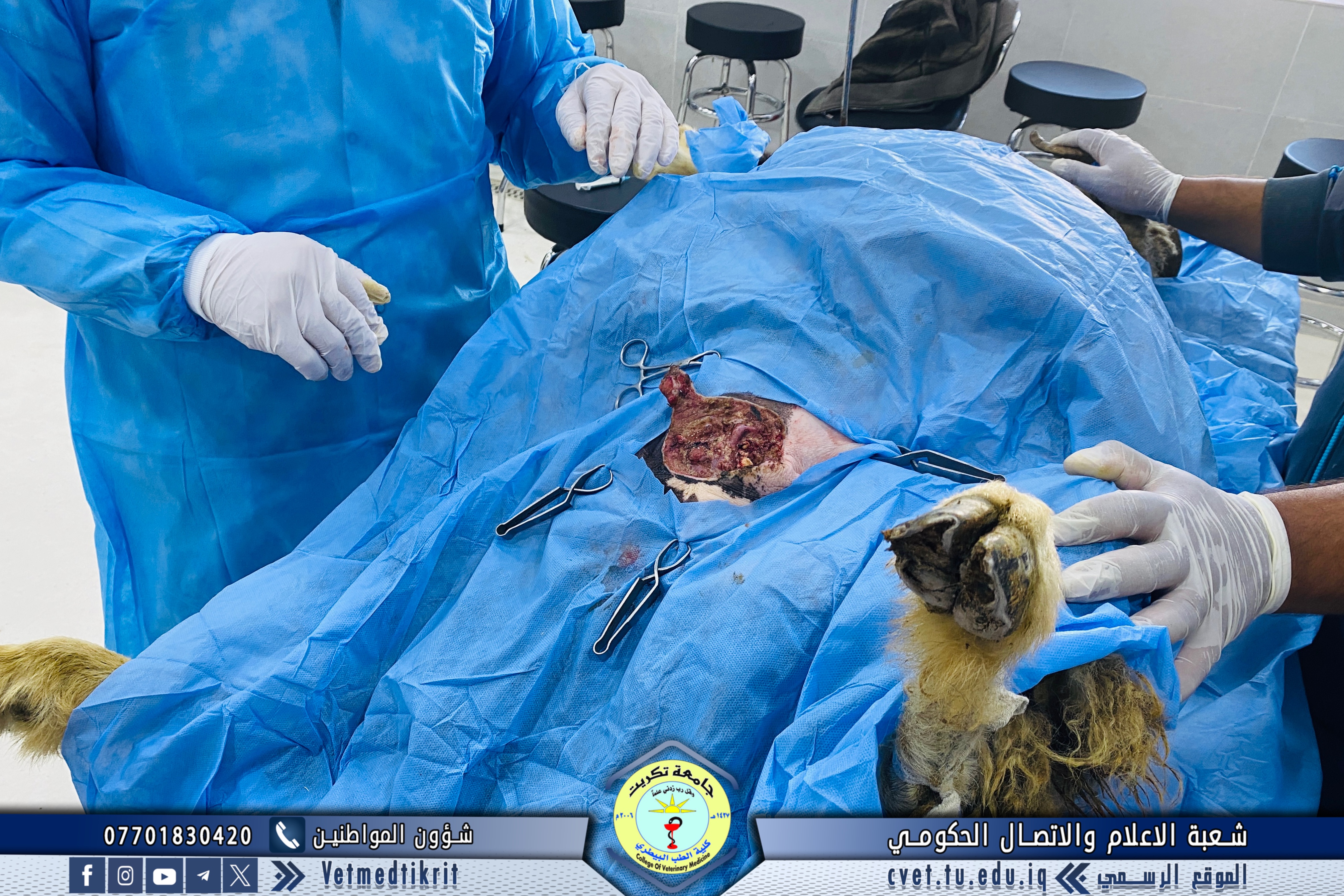 وعلى الفور، أجرى الكادر البيطري المختص الفحوصات اللازمة، ليتم اتخاذ القرار بإجراء عملية جراحية عاجلة تمثلت في استئصال الضرع المتضرر، بهدف إنقاذ الحيوان ومنع حدوث مضاعفات خطيرة.