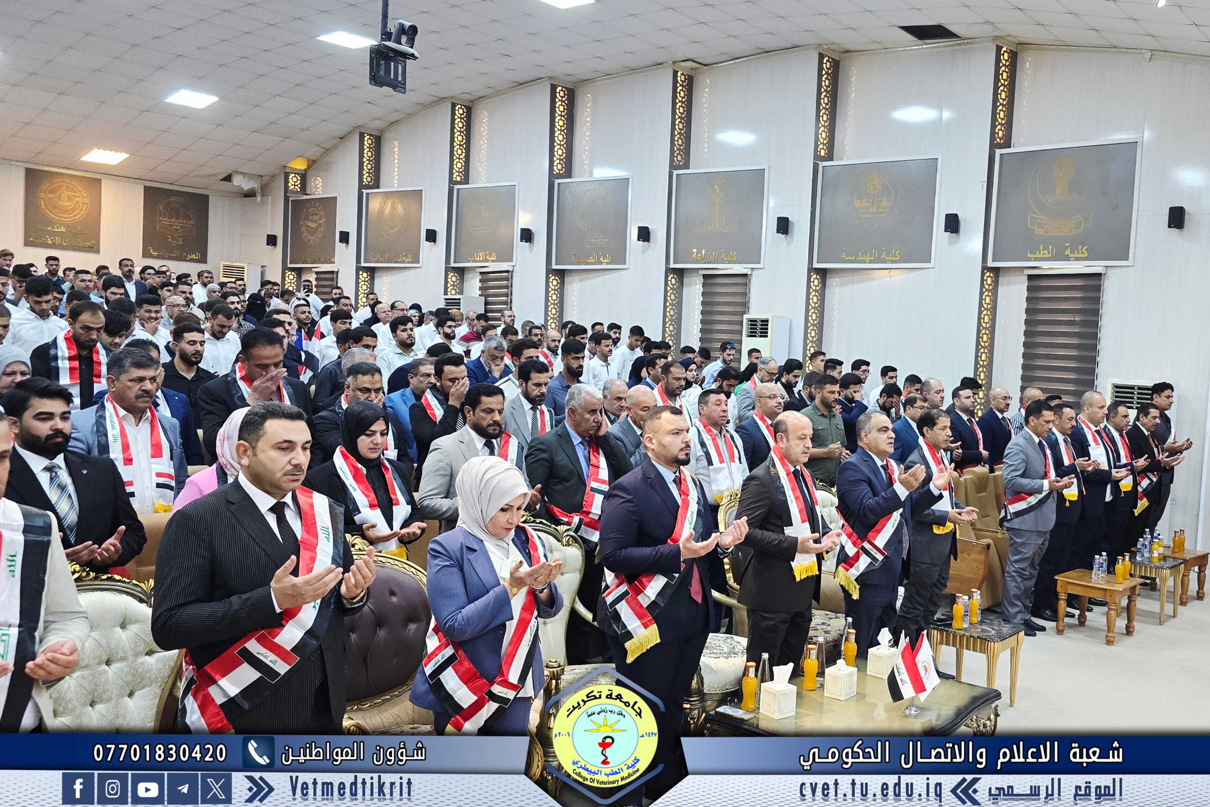 برعاية السيد رئيس جامعة تكريت الأستاذ الدكتور وعد محمود رؤوف، شاركت كلية الطب البيطري في فعاليات الاحتفال المركزي بالعيد الوطني العراقي الذي أقامته الجامعة على قاعة الخوارزمي في كلية الهندسة، وذلك احتفاءً بالمناسبة الوطنية العزيزة التي تجسد وحدة الشعب العراقي واعتزازه بتاريخه المجيد. وحضر الاحتفال الأستاذ الدكتور بشار صادق نومي عميد كلية الطب البيطري، يرافقه السادة معاوني العميد ورؤساء الفروع العلمية، وعدد من أعضاء الهيئة التدريسية والإدارية، فضلاً عن جمع من طلبة الكلية الذين شاركوا بحماس يعكس روح الانتماء والفخر الوطني. تضمن الحفل كلماتٍ وعروضاً احتفالية سلّطت الضوء على مسيرة العراق التاريخية ونهضته العلمية والثقافية، مؤكدين أن هذه المناسبة تمثل فرصة لتعزيز قيم المواطنة والانتماء بين أوساط الطلبة والمنتسبين في جامعة تكريت. وفي ختام الاحتفال، عبّر عميد كلية الطب البيطري عن اعتزازه بالمشاركة في هذه الفعالية الوطنية، مؤكداً أن الكلية ماضية في دعم جميع الأنشطة التي تعزز روح الانتماء للوطن وتغرس القيم الوطنية في نفوس الطلبة.