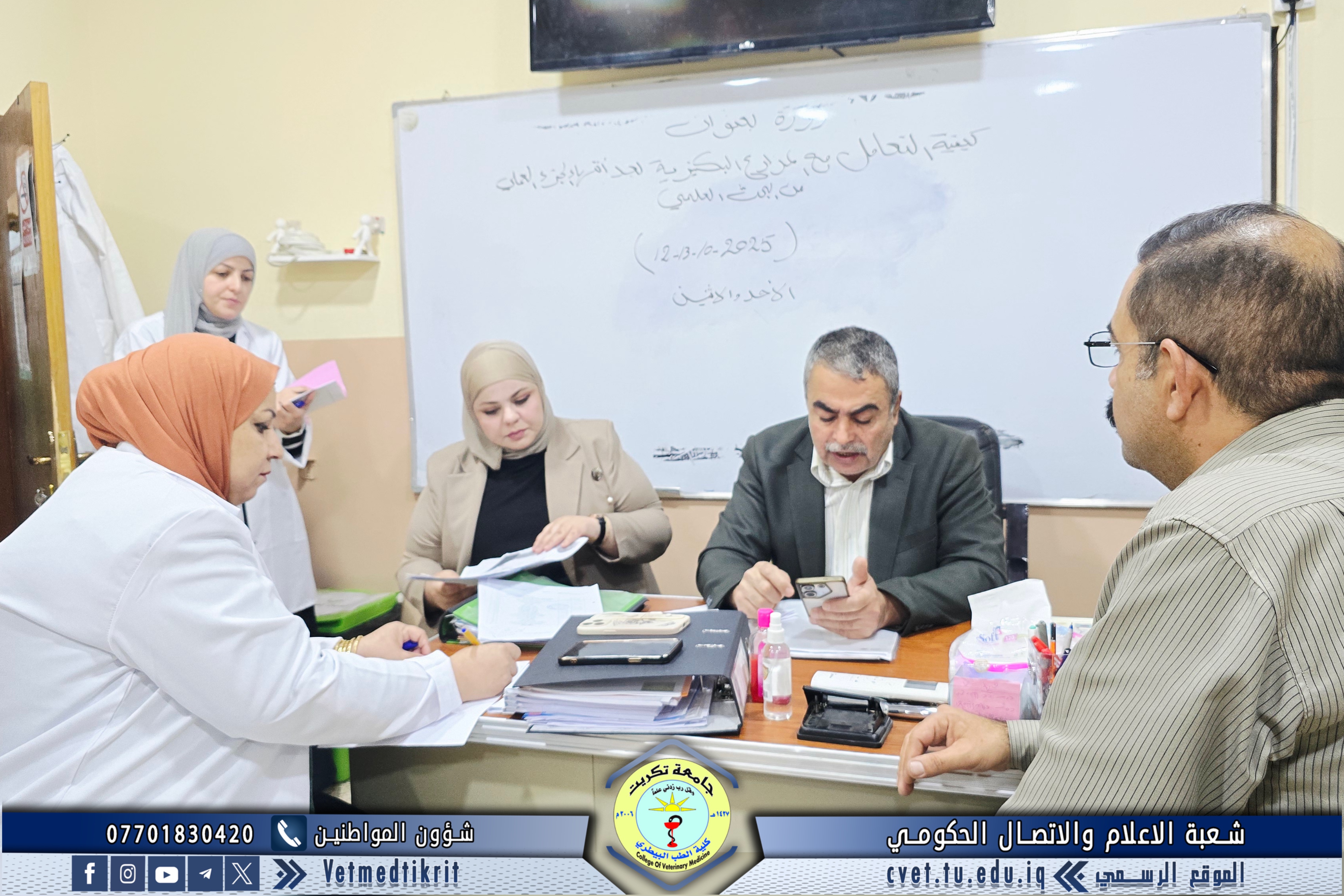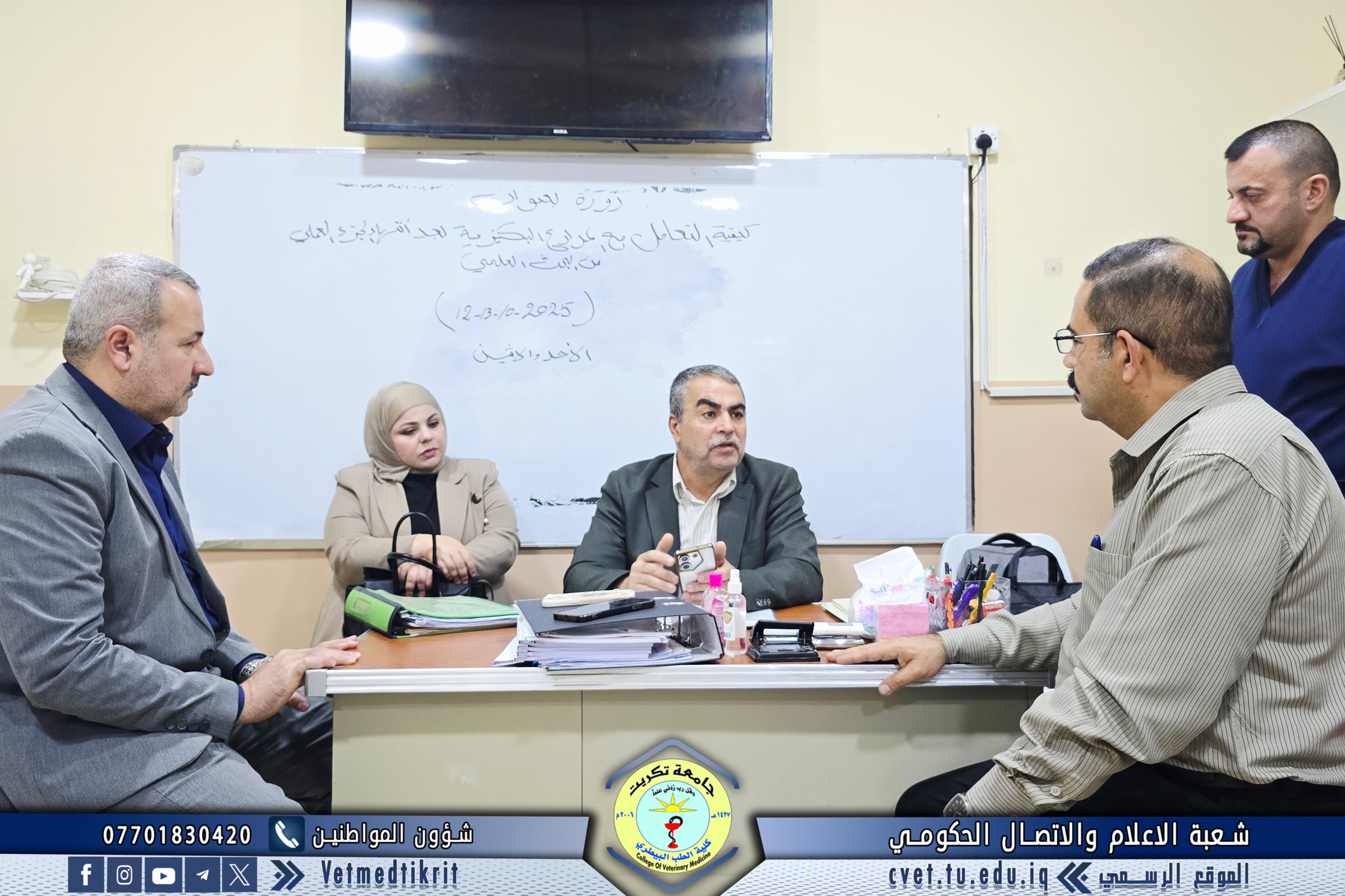 استقبلت كلية الطب البيطري بجامعة تكريت لجنة جامعية مختصة بتقييم الواقع العلمي والأكاديمي في الكلية، وذلك استعداداً لزيارة اللجنة الوزارية المرتقبة خلال الأيام القادمة. مثل اللجنة كل من (الاستاذ الدكتور سعدي حميد من كلية العلوم و المدرس الدكتورة وجدان ثامر من كلية طب الاسنان) وكان في استقبال اللجنة الأستاذ الدكتور بشار صادق نومي عميد الكلية والأستاذ المساعد الدكتور منتصر محمد هلال المعاون العلمي، حيث رحّبا بأعضاء اللجنة وقدموا عرضاً موجزاً حول سير العملية التعليمية وجهود الكلية في تطوير بيئتها الأكاديمية والمختبرية.