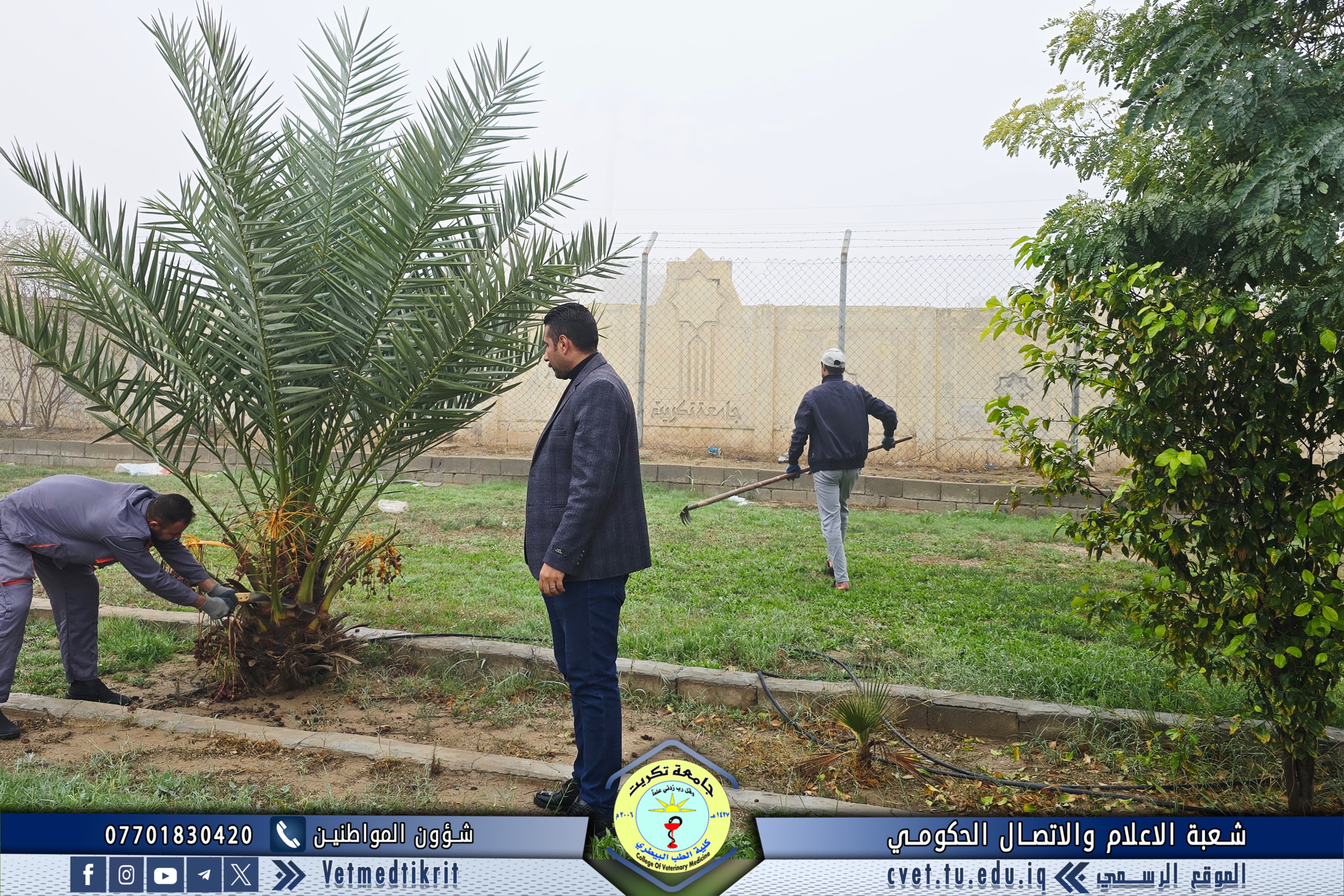 ضمن جهود كلية الطب البيطري في جامعة تكريت للارتقاء بالبيئة الجامعية والحفاظ على المظهر الجمالي للحرم الجامعي، نفّذت شعبة الحدائق والخدمات حملة شاملة لإدامة وصيانة الحدائق الخارجية في الكلية.