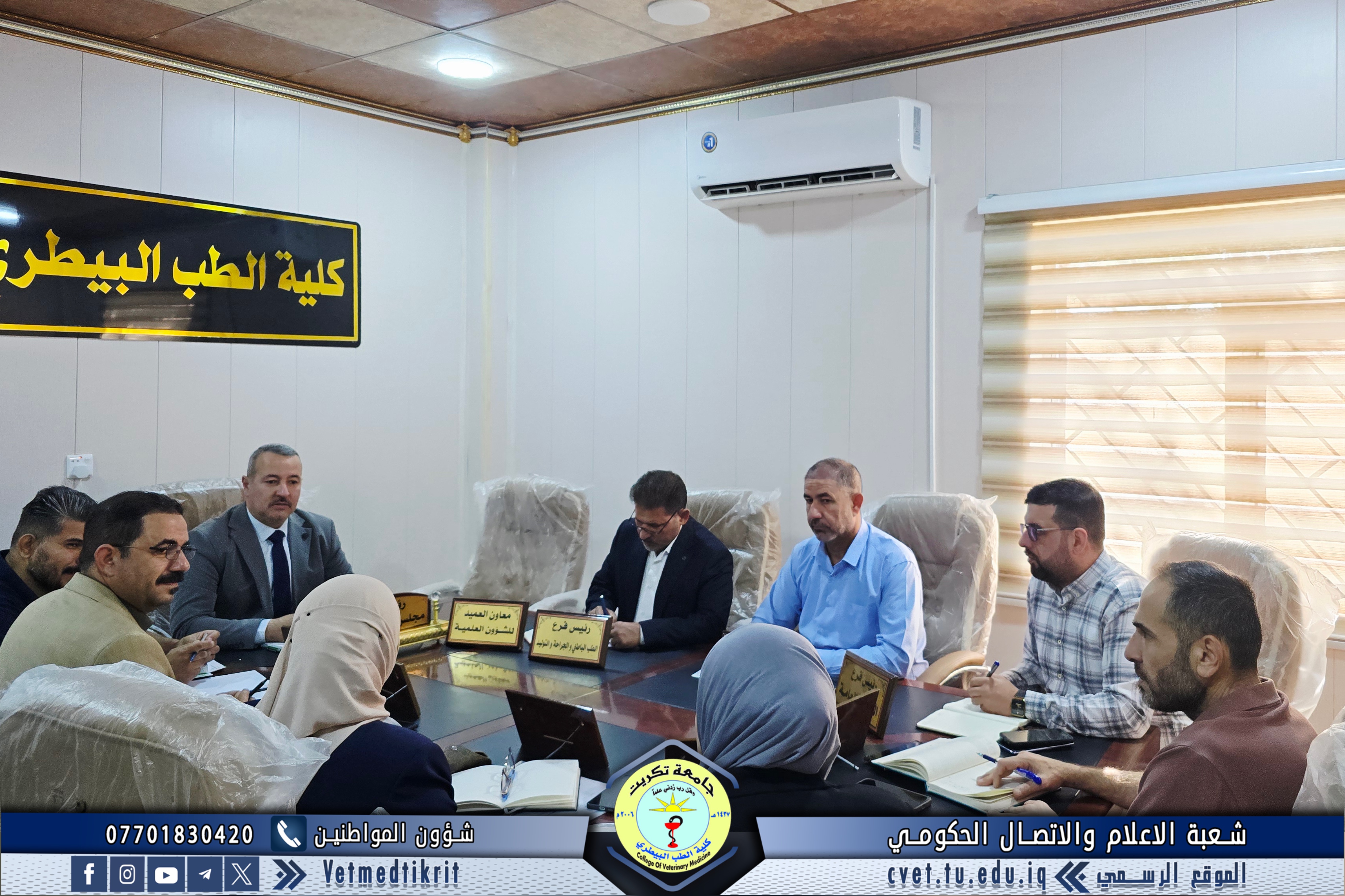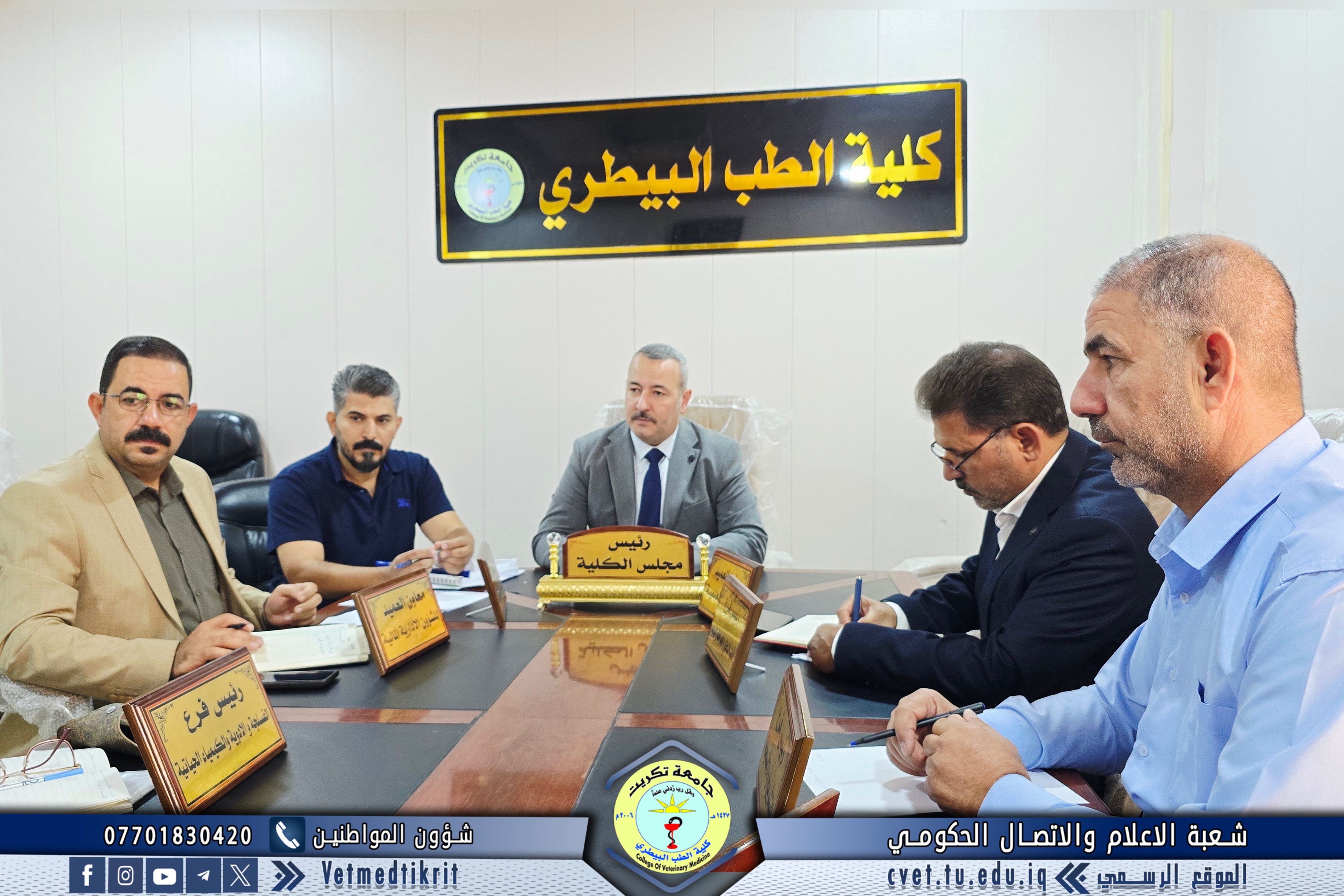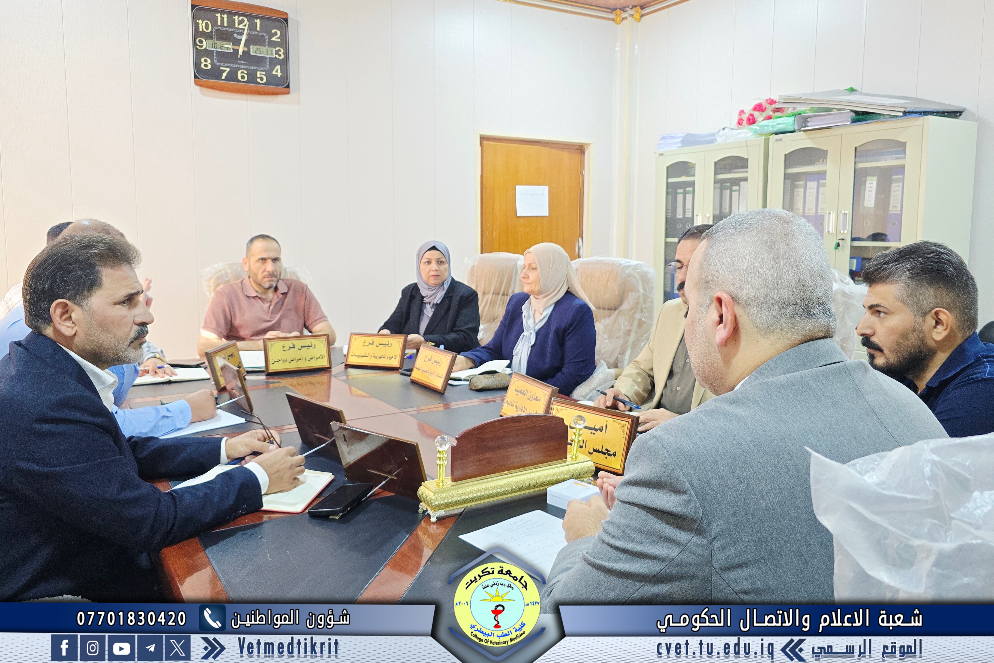 عقد مجلس كلية الطب البيطري في جامعة تكريت جلسته الرابعة للعام الدراسي 2025-2026 برئاسة الأستاذ الدكتور بشار صادق نومي عميد الكلية، وبحضور السادة المعاونين والسيدات والسادة رؤساء الفروع العلمية. في مستهل الاجتماع رحب السيد العميد بالحضور متمنياً لهم التوفيق والنجاح، ثم ناقش المجلس عدداً من القضايا المدرجة على جدول الأعمال، أبرزها استعدادات الكلية لاستقبال الطلبة المقبولين للعام الدراسي الحالي ،ومنح شهادة الماجستير لعدد من الطلبة، ومناقشة عناوين بحوث التخرج لطلبة المرحلة الخامسة مع تحديد اسماء المشرفين، وعدد من الامور الاخرى التي تهم الكلية بشكل عام. ويأتي انعقاد المجلس في إطار سعي الكلية لمواصلة مسيرتها العلمية والأكاديمية بخطوات مدروسة نحو التميز وضمان الجودة في الأداء التعليمي