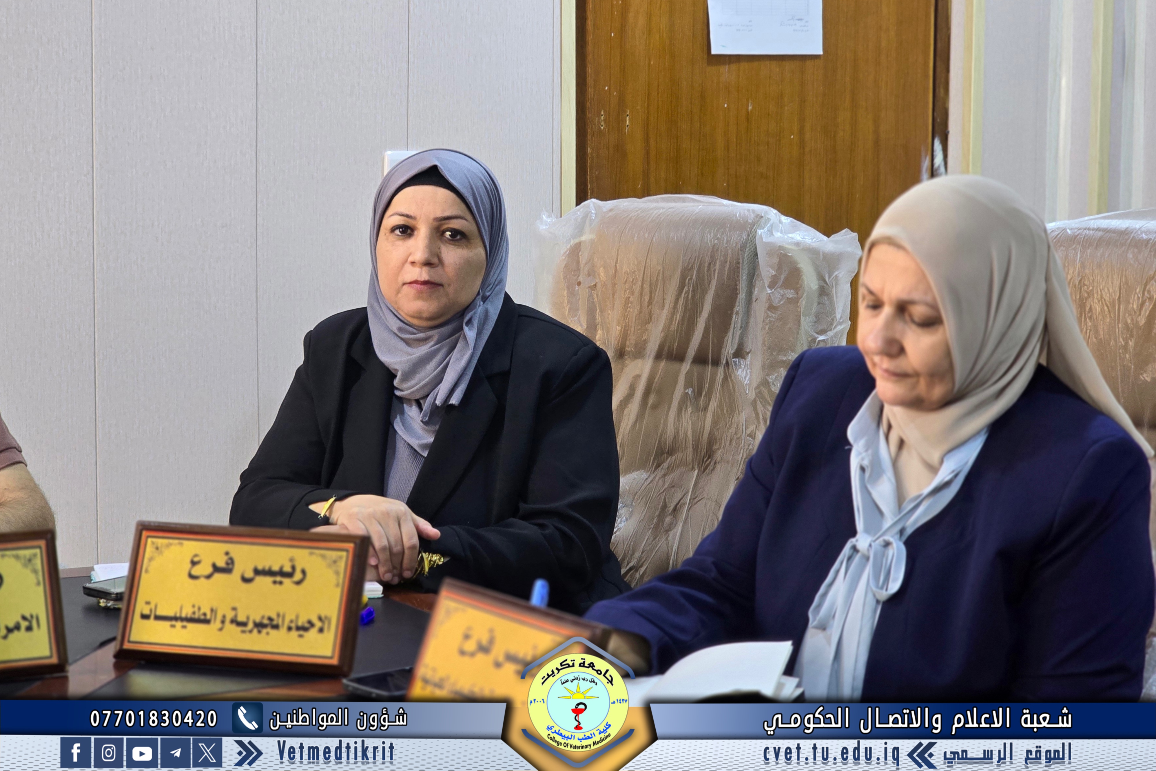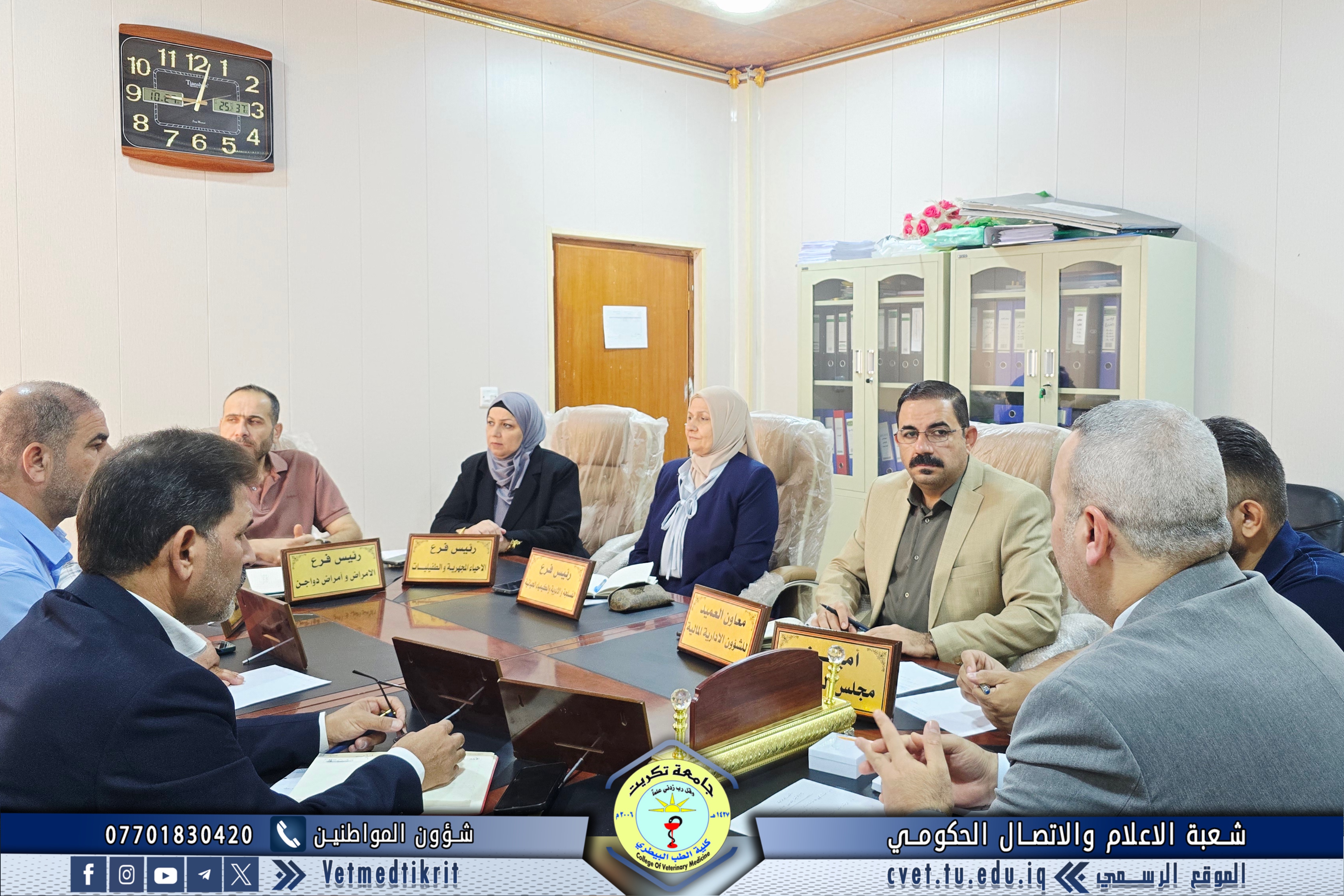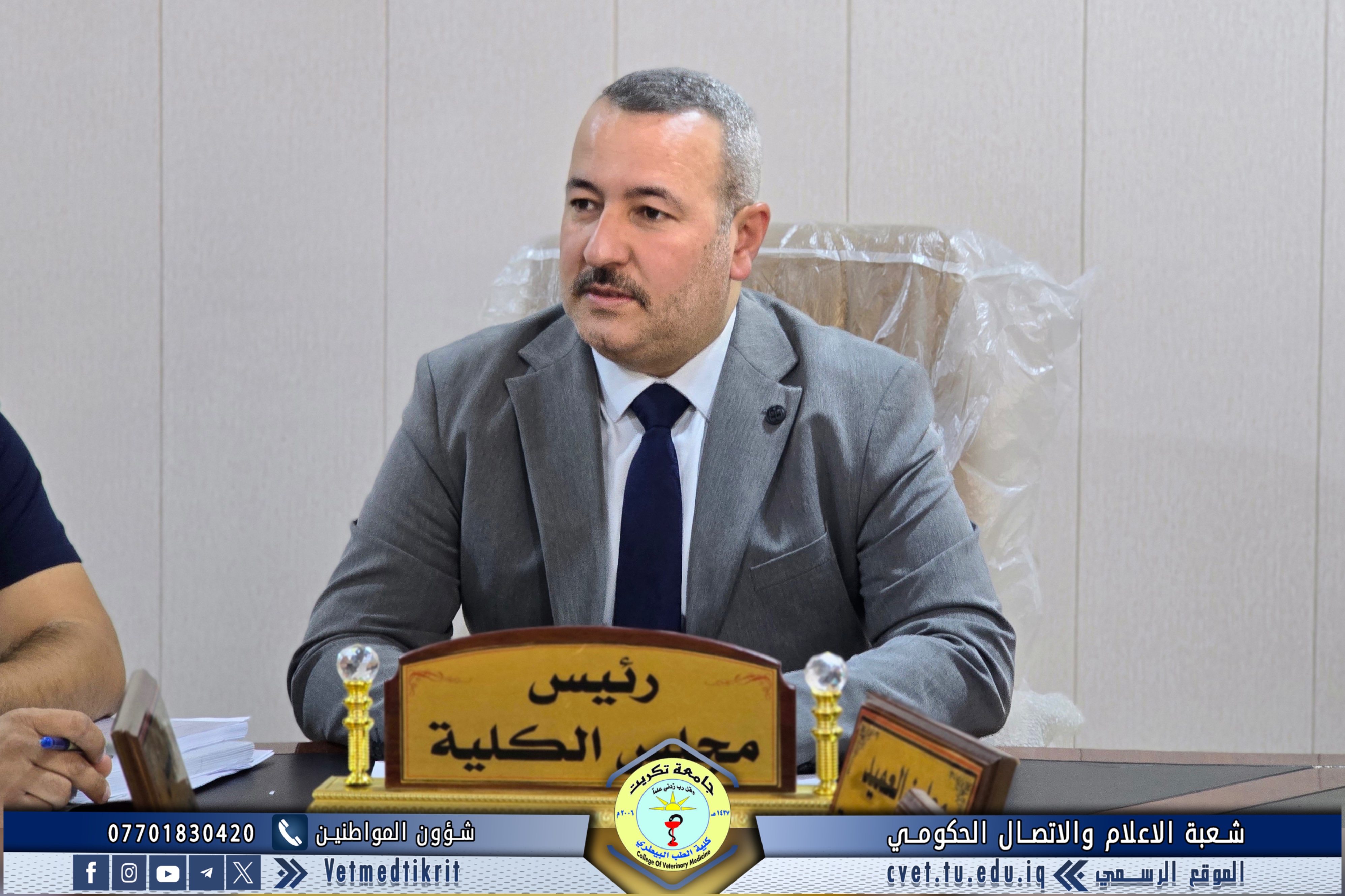 عقد مجلس كلية الطب البيطري في جامعة تكريت جلسته الرابعة للعام الدراسي 2025-2026 برئاسة الأستاذ الدكتور بشار صادق نومي عميد الكلية، وبحضور السادة المعاونين والسيدات والسادة رؤساء الفروع العلمية. في مستهل الاجتماع رحب السيد العميد بالحضور متمنياً لهم التوفيق والنجاح، ثم ناقش المجلس عدداً من القضايا المدرجة على جدول الأعمال، أبرزها استعدادات الكلية لاستقبال الطلبة المقبولين للعام الدراسي الحالي ،ومنح شهادة الماجستير لعدد من الطلبة، ومناقشة عناوين بحوث التخرج لطلبة المرحلة الخامسة مع تحديد اسماء المشرفين، وعدد من الامور الاخرى التي تهم الكلية بشكل عام. ويأتي انعقاد المجلس في إطار سعي الكلية لمواصلة مسيرتها العلمية والأكاديمية بخطوات مدروسة نحو التميز وضمان الجودة في الأداء التعليمي